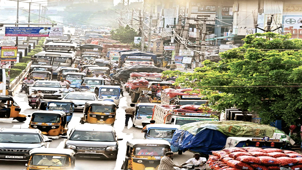 మార్కెట్లో గుట్టలుగా నిల్వలు, రోడ్డుపై వాహనాల బారులు