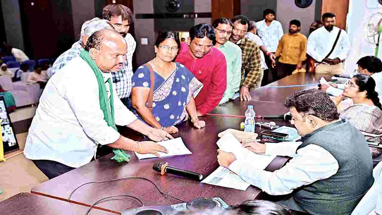 కర్నూలు కలెక్టరేట్, ఆగస్టు 11 (ఆంధ్రజ్యోతి): రెవెన్యూ శాఖకు సంబంధించిన సమస్యల పరిష్కారం కోసం ప్రతి శుక్రవారం నిర్దేశించిన మండలంలో రెవెన్యూ గ్రీవెన్స్ నిర్వహించనున్నట్లు కలెక్టర్ రంజిత్ బాషా తెలిపారు. కర్నూలు కలెక్టరేట్ సునయన ఆడిటోరియంలో సోమవారం ప్రజా సమస్యల పరిష్కార వేదిక కార్యక్రమంలో భాగంగా కలెక్టర్ ప్రజల నుంచి వినతులు స్వీకరించారు. అనంతరం కలెక్టర్ ఫిర్యాదుల పరిష్కారంపై అధికారులతో సమీక్షించారు. కలెక్టర్ మాట్లాడుతూ పీజీఆర్ఎస్ ద్వారా రెవెన్యూ శాఖకు సంబందించిన దరఖాస్తులు ఎక్కువగా వస్తున్న నేపథ్యంలో వాటికి మండల స్థాయిలోనే పరిష్కారం చూపేందుకు ప్రతి శుక్రవారం నిర్దేశించిన ఒక మండలంలో రెవెన్యూ గ్రీవెన్స్ను నిర్వహించనున్నట్లు తెలిపారు. ఈ గ్రీవెన్స్కు జాయింట్ కలెక్టర్, ఆర్డీవో హాజరవుతారన్నారు.