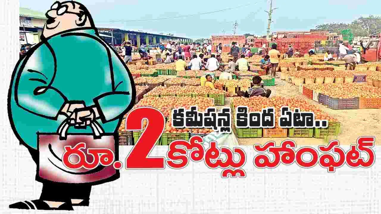 ప్రధాన పంటలు ప్రకృతి వైపరీత్యాలకు దెబ్బతిని నష్టాలు చూపినా కనీస పెట్టుబడులను దక్కించే టమోటా సాగునే పశ్చిమప్రాంత రైతులు ఎక్కువగా నమ్ముకుంటారు. ఆదుకుంటుందను కున్న టమోటా మంచి దిగుబడులొచ్చినా అమ్మేందుకు వెళ్లి మార్కెట్లో వ్యాపారుల చేతిలో మోసపోతున్నారు. కూరగాయలు, టమోటా పంటల కొనుగోలుపై సుంకం వసూలును ప్రభుత్వం ఎత్తివేసినా పంట కొనుగోలుపై 10శాతం కమీషన్ రైతుల నుంచి వసూలు చేస్తూ వ్యాపారులు అన్నదాత కష్టాన్ని అడ్డంగా దోచేస్తున్నారు. పంట కొనుగోలులో నిబంధనలు పాటించని వ్యాపారులు మార్కెట్యార్డ్కు చెల్లించాల్సిన ఒక్క శాతం సెస్ కూడా కట్టకుండా ప్రభుత్వాన్ని మోసం చేస్తున్నారు. మాఫియాను తలపిస్తూ ఏటా రైతుల కష్టాన్ని కోట్లలో కమీషన్ పేరిట దోచుకుతింటున్న పత్తికొండ మార్కెట్యార్డ్ టమోటా వ్యాపారుల వ్యవహారంపై ‘ఆంధ్రజ్యోతి’ ప్రత్యేక కథనం.