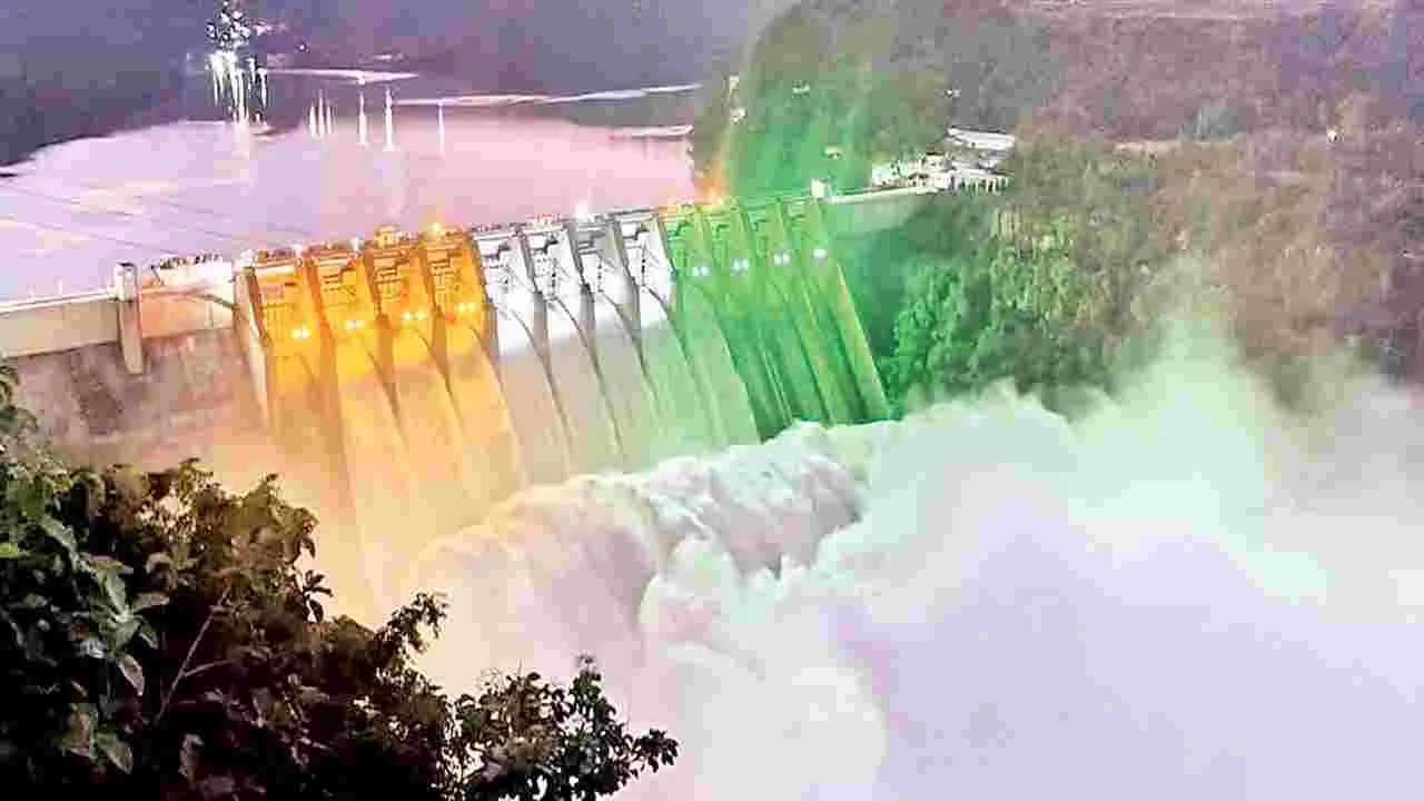 శ్రీశైలం, సెప్టెంబరు 20 (ఆంధ్రజ్యోతి): శ్రీశైలం రిజర్వాయర్కు నీటి ప్రవాహం పోటెత్తడంతో ఇంజనీర్లు 8 గేట్లను ఒక్కొక్కటి 10 అడుగుల ఎత్తు మేరకు తెరిచి స్పిల్వే గుండా 2,22,032 క్యూసెక్కుల నీటిని సాగర్కు విడుదల చేస్తున్నారు. శనివారం సాయంత్రం 6 గంటల సమయానికి డ్యాం నీటిమట్టం 884 అడుగులు ఉండగా నీటినిల్వ సామర్థ్యం 211 టీఎంసీలుగా ఉంది. శ్రీశైలం రెండు జలవిద్యుత్ కేంద్రాల్లో ఉత్పత్తి అనంతరం జెన్కో అధికారులు 65,890 క్యూసెక్కులు విడుదల చేశారు.