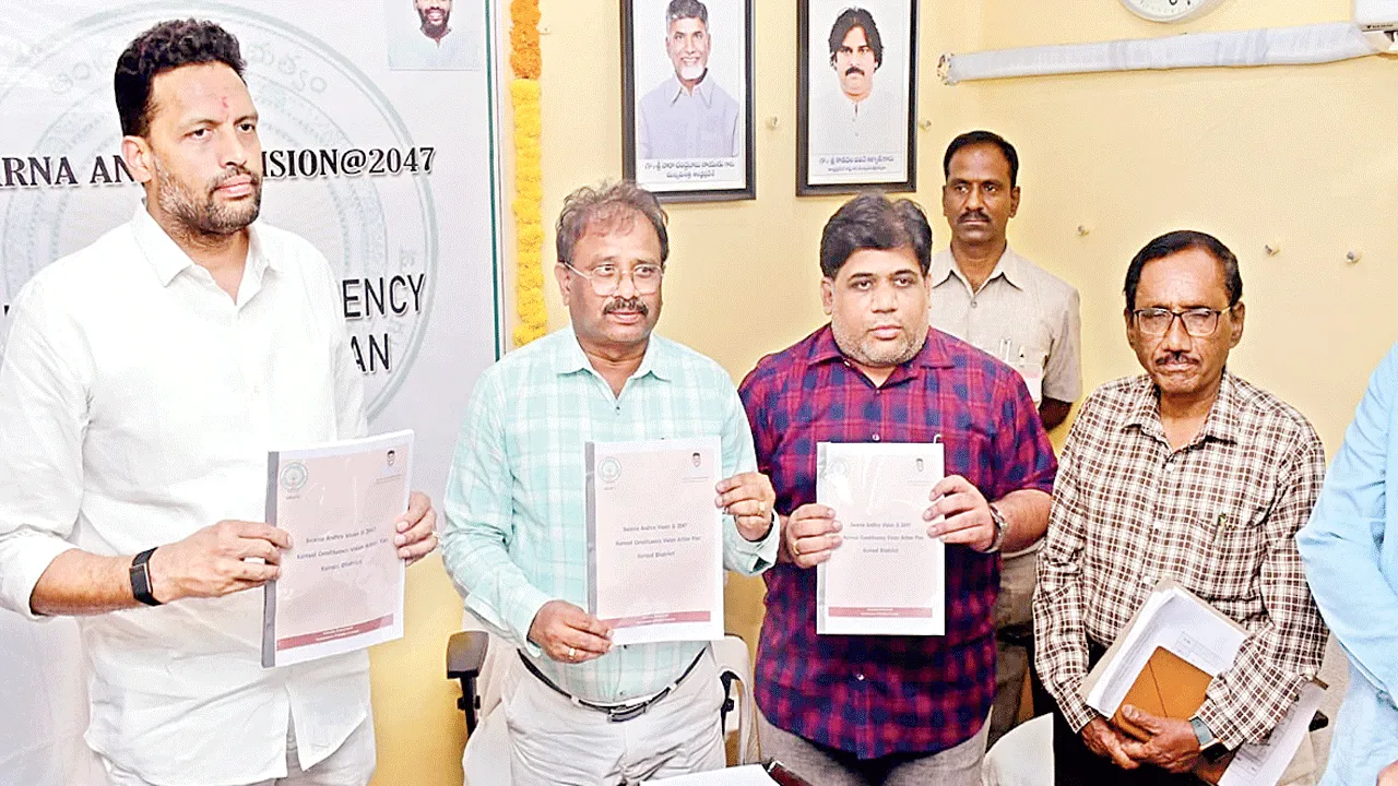 కర్నూలు న్యూసిటీ, జూన 9(ఆంధ్రజ్యోతి): సీఎం చంద్రబాబు విజనరీతోనే రాష్ట్రం అన్ని విధాలుగా ప్రగతి పథంలో పయనిస్తోందని రాష్ట్ర పరిశ్రమల శాఖ మంత్రి టీజీ భరత పేర్కొన్నారు. సోమవారం నగరపాలక కార్యాలయంలో కర్నూలు నియోజకవర్గ దార్శనికత కార్యా చరణ కార్యాలయాన్ని మంత్రి కమిషనర్ రవీంద్రబాబుతో కలిసి ప్రారం భించారు. ఈసందర్భంగా మంత్రి టీజీ భరత మాట్లాడుతూ విజన అనగానే అందరికీ చంద్రబాబే గుర్తుకు వస్తారన్నారు. రెండోసారి ము ఖ్యమంత్రి అయ్యాక విజన-2020కి శ్రీకారం చుట్టారన్నారు. దాని ఫలి తంగానే నేడు హైదరాబాద్ విశ్వనగరంగా ప్రఖ్యాతి గాంచిందన్నారు. భావితరాల కోసం విజన-2047 కార్యక్రమానికి నాంది పలికారన్నారు. రాష్ట్ర, జిల్లా నియోజకవర్గ స్థాయిలో ప్రజలు, ప్రజాప్రతి నిధుల నుంచి అభిప్రాయాలను తీసుకుని వాటికి విజన డాక్యుమెంటరీ రూపొందించి వాటి అమలుకు ప్రభుత్వం చర్యలు తీసుకుంటుంద న్నారు. ఒక్కొక్క నియోజకవర్గానికి ఐదుగురు విద్యావంతులతో సాధికార బృందాన్ని ఏ ర్పాటుచేసిందన్నారు. వీరు నియోజకవర్గ అభివృద్ధికి కార్యాచరణ అమలు కోసం పనిచేస్తారని, ఫలితంగా నియోజకవర్గ అభి వృద్ధికి దోహదపడుతుందన్నారు. అనంతరం కమిషనర్ రవీంద్రబాబు మాట్లాడుతూ సాధికార బృందాలకు ఒక కార్యాలయం ఉండాలనే ఉద్దే శంతో ప్రభుత్వ ఆదేశాల మేరకు తాత్కాలిక కార్యాలయాన్ని ఏర్పాటు చేశామన్నారు. త్వరలో అన్ని వసతులతో శాశ్వత కార్యాలయాన్ని ఏర్పాటు చేస్తామని వెల్లడించారు. అనంతరం విజన-2047 ప్లాన బుక్ లెట్ను మంత్రి, అధికారులు ప్రారంభించారు. కార్యక్రమంలో అడిషనల్ కమిషనర్ ఆర్జీవీ కృష్ణ, మేనేజర్ చిన్నరా ముడు, ప్రజారోగ్య అధికారి కె.విశ్వేశ్వరరెడ్డి, ఇనచార్జి ఎస్ఈ శేషసాయి, శానిటేషన సూపర్వైజర్ నాగరాజు పాల్గొన్నారు.