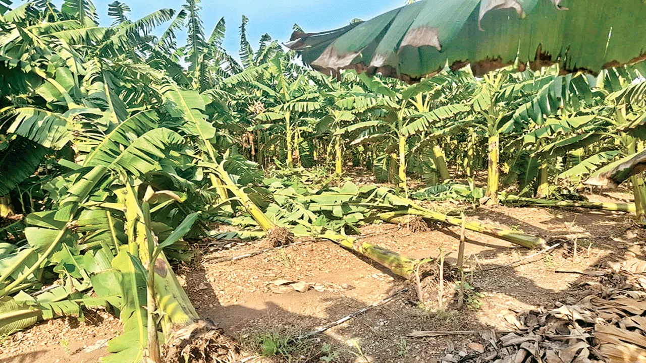 దెబ్బతిన్న అరటి, మునగ, మామిడి తోటలు