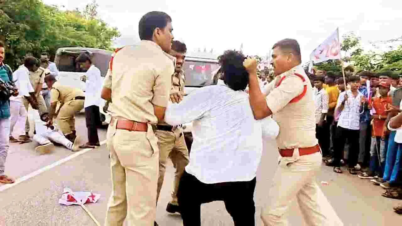 విద్యార్థులు, పోలీసుల మధ్య తోపులాట