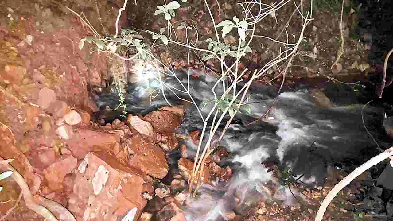 గండిపడ్డ చోట నుంచి వృఽథాగా పోతున్న నీరు