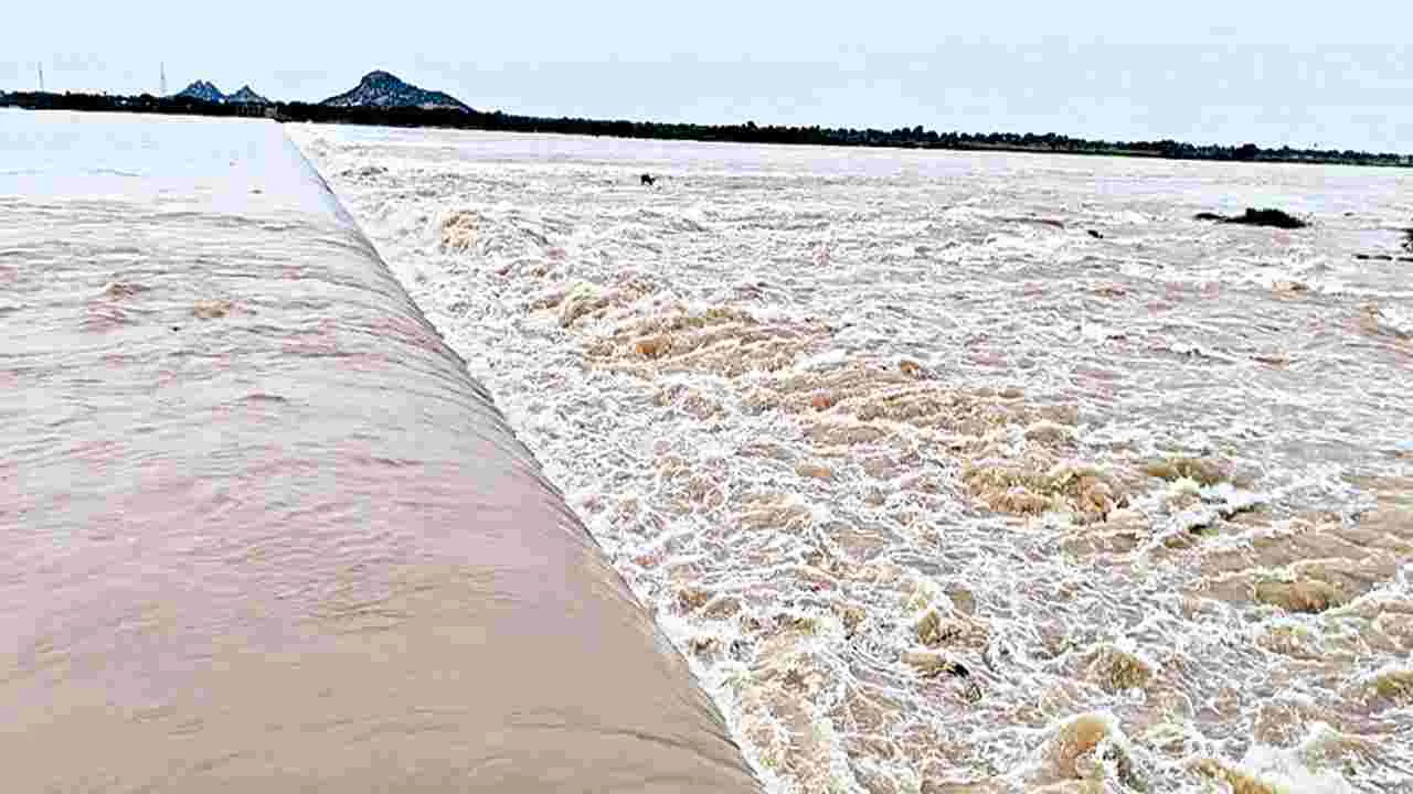 కోసిగి, అక్టోబరు 26 (ఆంధ్రజ్యోతి): అల్పపీడన ద్రోణితో కురుస్తున్న వర్షాలకు మండలంలోని అగసనూరు గ్రామ సమీపంలోని ఆర్డీఎస్ ఆనకట్టకు వరద పోటెత్తింది. నాలుగు రోజులుగా కురుస్తున్న వర్షాలకు కర్ణాటక రాష్ట్రంతో పాటు ఏపీలో వర్షాలు విస్తారంగా కురుస్తున్నాయి. వర్షాలకు వరద నీరు పోటెత్తడంతో ఆర్డీఎస్ ఆనకట్ట మీద నుంచి దిగువకు నీరు పారుతోంది. మరో రెండు రోజులు ఆర్డీఎస్ ఆనకట్టకు భారీగా వరద నీరు పోటెత్తే అవకాశం ఉందని అధికారులు అంచనా వేస్తున్నారు. ప్రజలను అప్రమత్తం చేశారు. నదితీర ప్రాంతంలో చేతికొచ్చిన పైర్లు నీటి మునిగి రైతులకు తీవ్ర నష్టాన్ని కలిగించాయి.