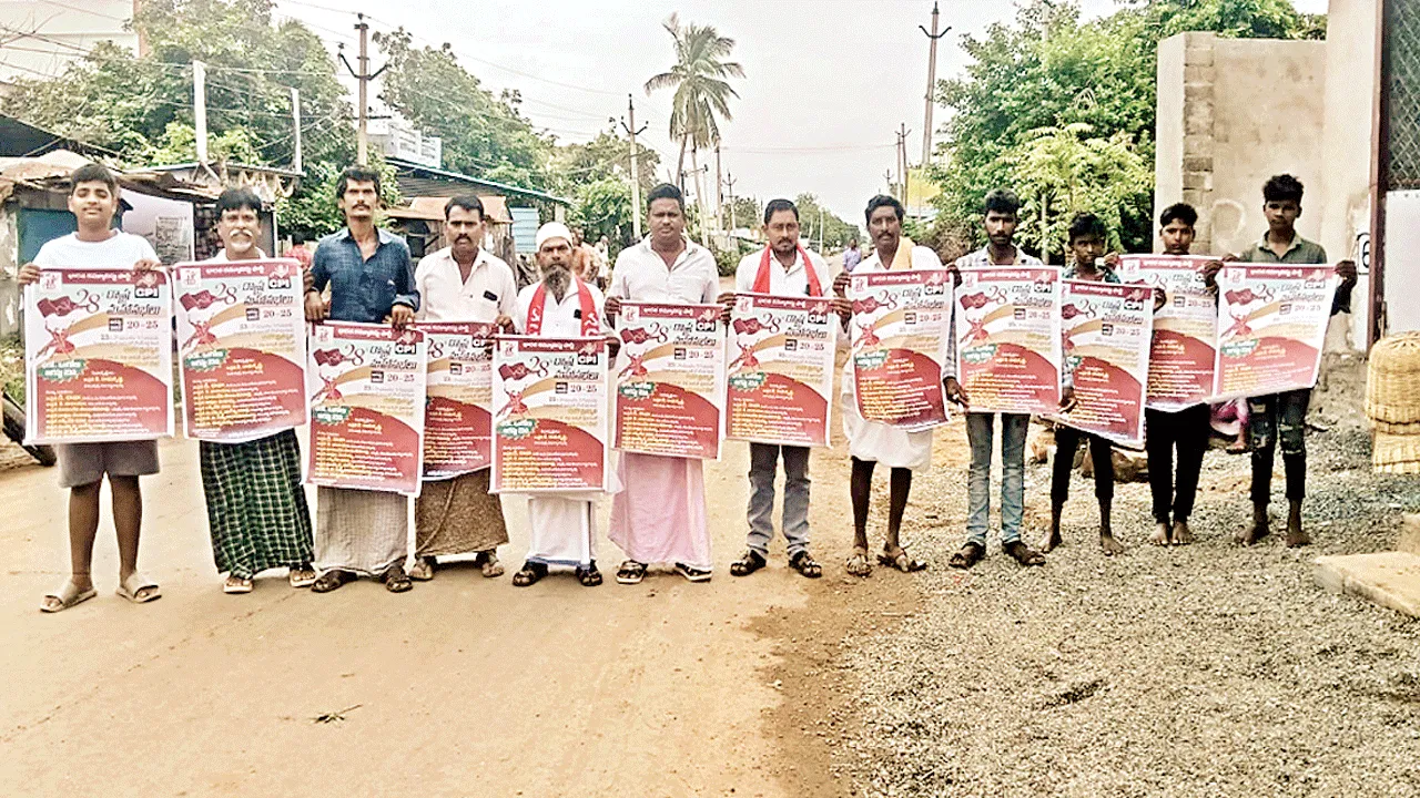 గోస్పాడు, ఆగస్టు 16 (ఆంధ్రజ్యోతి): ఒంగోలులో 20నుంచి 25వరకు జరిగే సీపీఐ రాష్ట్ర మహాసభలను జయప్రదం చేయాలని సీపీఐ మండల కార్యదర్శి హరినాథ్ అన్నారు. శనివారం గోస్పాడులో కార్యకర్తలతో కలిసి గోడపత్రికలను ఆయన విడుదల చేశారు. ఆయన మాట్లాడుతూ నిత్యం పేదలు, బడుగు, బలహీనవర్గాల కోసం పాటుపడే సీపీఐ పార్టీకి ప్రజలు అండదండగా నిలవాలన్నారు. మహాసభలకు విద్యార్థి, యువజన, కార్మిక, కర్షక, ఉద్యోగ, ఉపాధ్యాయులు, స్కీం వర్కర్లు హాజరై జయప్రదం చేయాలని కోరారు. కార్యక్రమంలో సీపీఐ మండల సహాయ కార్యదర్శి జిలానిబాషా, మౌల, నరసింహ, నాగరాజు, వెంకటేశ్వర్లు, గౌతమ్, కార్తీక్ తదితరులు పాల్గొన్నారు.