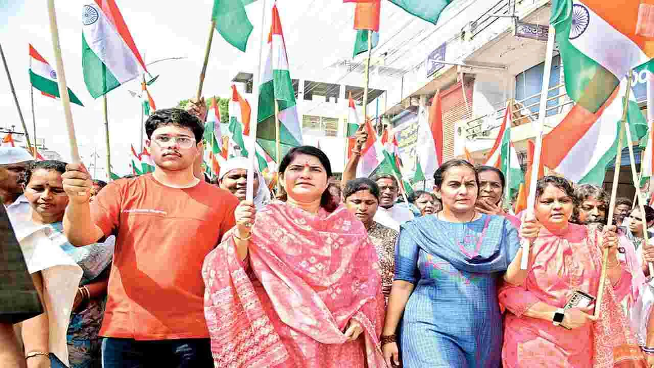 నంద్యాల కల్చరల్, మే 18(ఆంధ్రజ్యోతి): దేశ రక్షణ కోసం సైనికులు చేసిన త్యాగాలు మరువలేనివని ఎంపీ బైరెడ్డి శబరి, కలెక్టర్ రాజకుమారి అన్నారు. ఆదివారం నంద్యాల పట్టణంలోని టెక్క మార్కెట్యార్డు నుంచి గాంధీచౌక్ వరకు భారీగా తిరంగా ర్యాలీ నిర్వహించారు. కలెక్టర్ మాట్లాడుతూ ‘ఆపరేషన్ సిందూర్’ విజయోత్సవం సందర్భంగా త్రివిధ దళాల సైనికులకు సంఘీ భావంగా తిరంగా ర్యాలీ నిర్వహి స్తున్నా మన్నారు. తిరంగా ర్యాలీలో పాల్గొన్న ప్రతిఒక్కరికీ ధన్య వాదాలు తెలిపారు. ఎంపీ బైరెడ్డి శబరి మాట్లా డుతూ ఉగ్రవాదాన్ని పెంచి పోషిస్తున్న పాక్కు అర్థమయ్యేలా ‘ఆపరేషన్ సిందూర్’తో భారత్ జవాబు చెప్పిందన్నారు. ఉగ్రవాదులకు భూమి మీద బతికే అర్హత లేదన్నారు. ఉత్సాహంగా సాగిన ఈ ర్యాలీ గాంధీచౌక్ చేరుకొని మహాత్మాగాంధీ విగ్రహానికి పూల మాలలు వేసి నివాళి అర్పించారు. అనంతరం ఏర్పాటుచేసిన సభలో కలెక్టర్ రాజకుమారి, ఎంపీ శబరి అమరజవాన్ మురళీనాయక్కు, పహల్గాం మృతులకు సంతాపం తెలిపారు. అనంతరం సైనికులను, మాజీ సైనికులను సన్మానించారు. ఈ తిరంగా ర్యాలీలో మాజీ మంత్రి ఏరాసు ప్రతాపరెడ్డి, డాక్టర్ రామక్రిష్ణారెడ్డి, మైనార్టీ కార్పొరేషన్ అధ్యక్షులు ముస్తాక్ అహమ్మద్, టీడీపీ యువనేత ఫిరోజ్, బీజేపీ, జనసేన, టీ డీపీ నాయకులు, మాజీ సైనికులు, సైనిక కుటుంబాలు, బార్ అసోషి యేన్, నంద్యాల వైద్యుల సంఘం, ప్రైవేటు విద్యాసంస్ధల అధినేతలు, ఉపాధ్యాయ, ఉద్యోగ, విద్యార్ధి, మహిళా, పలు సంఘాల ప్రతినిధులు, ఎన్సిసి విద్యార్ధులు, రెడ్క్రాస్ ప్రతినిఽధులు తదితరులు పాల్గొన్నారు.