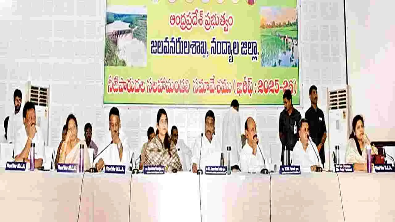 నంద్యాల ఎడ్యుకేషన్, జూలై 12 (ఆంధ్రజ్యోతి): ఎస్సార్బీసీ, కేసీ కెనాల్, తెలుగుగంగ వంటి ప్రధాన కాలువలతో పాటు జిల్లాలోని అన్ని కాలవలకు శనివారం అర్ధరాత్రి నుంచే నీటిని విడుదల చేస్తామని, ఖరీఫ్కు సంబంధించి ఈ ఏడాది ప్రతి చివరి ఆయకట్టుకు నీరు అందించేందుకు చర్యలు తీసుకుంటున్నట్లు ప్రజాప్రతినిధులు తెలిపారు. నంద్యాల కలెక్టరేట్లోని పీజీఆర్ఎస్ హాల్లో కలెక్టర్ రాజకుమారి ఆధ్వర్యంలో జరిగిన ఐఏబీ సమావేశంలో రాష్ట్ర న్యాయ, మైనార్టీ సంక్షేమశాఖ మంత్రి ఎన్ఎండీ ఫరూక్, రోడ్లు, భవనాలు మౌలిక సదుపాయలు, పెట్టుబడులశాఖ మంత్రి బీసీ జనార్దన్రెడ్డి, జడ్పీ చైర్మన్ ఎర్రబోతుల పాపిరెడ్డి, ఎమ్మెల్యేలు గౌరుచరితా రెడ్డి, భూమా అఖిలప్రియ, బుడ్డా రాజశేఖరరెడ్డి, గిత్తా జయసూర్య హాజరయ్యారు. మంత్రులు మాట్లాడుతూ సీఎం చంద్రబాబు నాయుడు ఆదేశాల మేరకు శనివారం అర్ధరాత్రి నుంచి అన్ని ప్రధాన కాలువలకు నీటిని విడుదల చేస్తామన్నారు. సాగునీటికి ఇబ్బందులు పడకుండా చర్యలు తీసుకుంటున్నామని, నీటిని వృథా చేయవద్దని రైతులకు సూచించారు. జిల్లాలో ప్రతి రైతు వరి సాగు చేయడంతో సమస్యలు వస్తున్నాయని, సీజన్ పంటలపై దృషి సారించాలని సూచించారు. 15ఏళ్ల చరిత్రలో లేని విధంగా ఈ ఏడాది ఖరీఫ్ పంటలకు 20 రోజులు ముందుగానే నీటిని విడుదల చేస్తున్న ఘనత కూటమి ప్రభుత్వానికే దక్కిందన్నారు. కలెక్టర్ రాజకుమారి మాట్లాడుతూ నీటిపారుదలశాఖ అధికారులు, సిబ్బంది సమన్వయంతో పనిచేసి రైతులకు ఇబ్బంది లేకుండా చూడాలన్నారు. ఎమ్మెల్యే భూమా అఖిలప్రియ మాట్లాడుతూ ఆళ్లగడ్డలో కేసీ కెనాల్ కాల్వలను మీద వెంచర్ వేసిన వారిపై ప్రభుత్వ నియమ నిబంధనల ప్రకారం చర్యలు తీసుకోవాలని కోరారు. జిల్లాలో లస్కర్ల సిబ్బంది కొరత వల్ల రైతులకు సక్రమంగా నీళ్లు చేరడం లేదని, వెంటనే లస్కర్ల పోస్టులు భర్తీ చేయాలని విజ్ఞప్తి చేశారు.