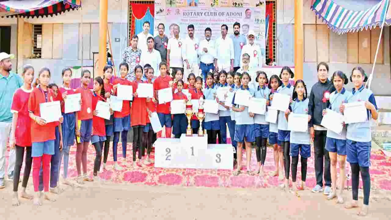 ఆదోని అగ్రికల్చర్, డిసెంబరు 14 (ఆంధ్రజ్యోతి): విద్యార్థులు క్రీడల్లోనూ రాణించాలని రోటరీ క్లబ్ జిల్లా గవర్నర్ త్రివిక్రమ్ జోషి అన్నారు. ఆదివారం ఆర్ట్స్ అండ్ సైన్స్ కళాశాల క్రీడా మైదానంలో రోటరీ క్లబ్ ఆధ్వర్యంలో న్యూ జనరేషన్ యాక్టివిటీస్ 2025-26 యాన్యువల్ జోనల్ స్పోర్ట్స్ అండ్ గేమ్స్ నిర్వహించారు. కార్యక్రమానికి ముఖ్యఅతిధి రోటరీ క్లబ్ జిల్లా గవర్నర్ త్రివిక్రమ్ జోషి, డిప్యూటీ ఈవో రాజేంద్రప్రసాద్, లెక్చరర్ కళ్యాణ్ కుమార్, రోటరీ క్లబ్ అధ్యక్షుడు డా. సైఫుల్లా, సెక్రెటరీ మేఘనాథ్ రెడ్డి, యూత్ ఆఫీసర్ సాబీర్, వికాస్లు జ్యోతి ప్రజ్వలన చేసి, పోటీలను ప్రారంభించారు. ఈ పోటీలలో 60 పాఠశాలల నుంచి క్రీడాకారులు పాల్గొన్నారు. పోటీల్లో ప్రతిభ కనబరి చిన విద్యార్థులకు కప్పులతో పాటు, సర్టిఫికెట్లను అందజేశారు. సహకరించిన 60 మంది వ్యాయామ ఉపాధ్యాయులను, పీఈటీలను సన్మానించారు. రోటరీ క్లబ్ ట్రెజరర్ షణ్ముఖ, సభ్యులు శ్రీధర్ రెడ్డి, జీవన్సింగ్, విట్టా మురళీధర్, సోమశేఖర్ రెడ్డి, భరత్ షా, ప్రశాంత్ గాంధీ, సుబ్బయ్య, వీరేష్ స్వామి, పద్మనాభయ్యశెట్టి, సందీప్రెడ్డి, శేషయ్య, శివరాం, హుస్సేన్ బాషా, వినయ్ పాల్గొన్నారు.