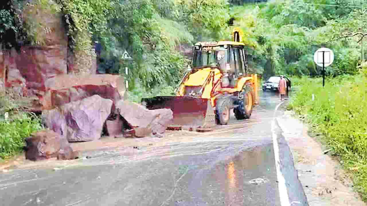 Highway Block: శ్రీశైలం రహదారిపై విరిగిపడిన కొండచరియలు
