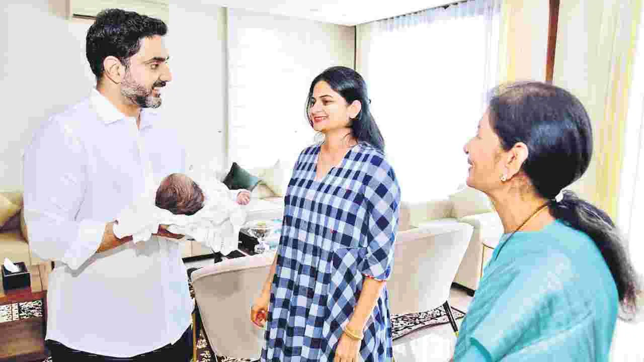 మంత్రి నారా లోకేశ్ మంగళవారం కేంద్ర మంత్రి కింజరాపు రామ్మోహన్ నివాసానికి వెళ్లారు. రామ్మోహన్, శ్రావ్య దంపతుల కుమారుడికి ఆశీస్సులు అందజేశారు. వారి కుమారుడిని ఎత్తుకుని ముద్దాడారు. అక్కడే ఉన్న మాజీ మంత్రి బండారు సత్యనారాయణ మూర్తి సతీమణి మాధవీలత క్షేమ సమాచారాలు అడిగి తెలుసుకున్నారు.