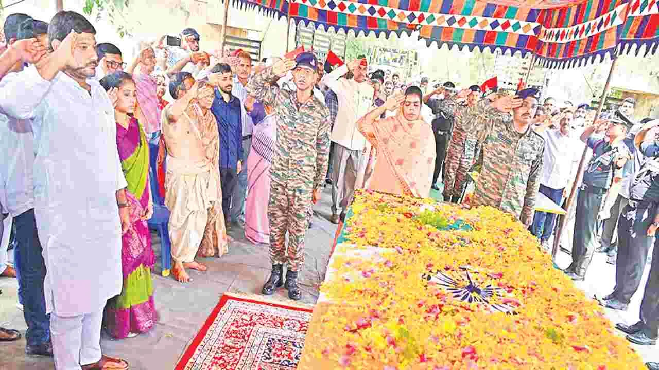 రాజస్థాన్లో సైనిక స్థావరంలో యుద్ధ విన్యాసాలు చేస్తూ మృతి చెందిన మేజర్ తేజ్ భరద్వాజ్ అంత్యక్రియలు బుధవారం గుంటూరులో అధికార లాంఛనాలతో నిర్వహించారు.