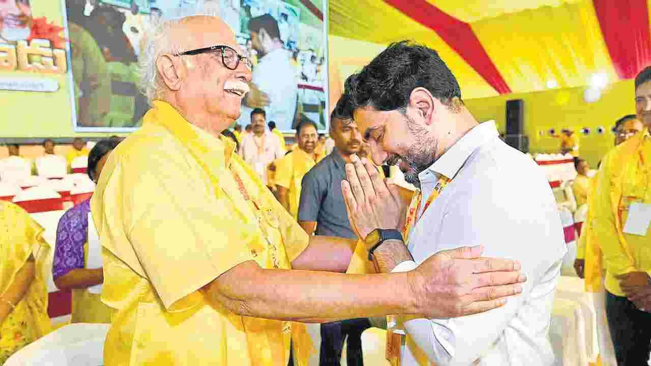 మహానాడులో మంత్రి లోకేశ్ ప్రత్యేక ఆకర్షణగా నిలిచారు. ఆయన్ను వర్కింగ్ ప్రెసిడెంట్గా నియమిస్తారని చర్చ నడుస్తోంది. సభాధ్యక్షత వహించిన మంత్రి పయ్యావుల కేశవ్ మాటలను బట్టి చూస్తే లోకేశ్ పార్టీలో ప్రమోట్ కావడం ఖాయంగా కనిపిస్తోంది. లోకేశ్, చంద్రబాబు పలుమార్లు సుదీర్ఘంగా మంతనాలు జరిపారు. కేంద్ర మంత్రులు రామ్మోహన్నాయుడు, పెమ్మసాని చంద్రశేఖర్, లోకేశ్ మాట్లాడుకున్నారు.