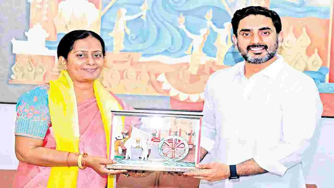 ‘షైనింగ్ టీచర్’ హెచ్ఎం దుర్గాభవానీకి మంత్రి లోకేశ్ అభినందన, సత్కారం
