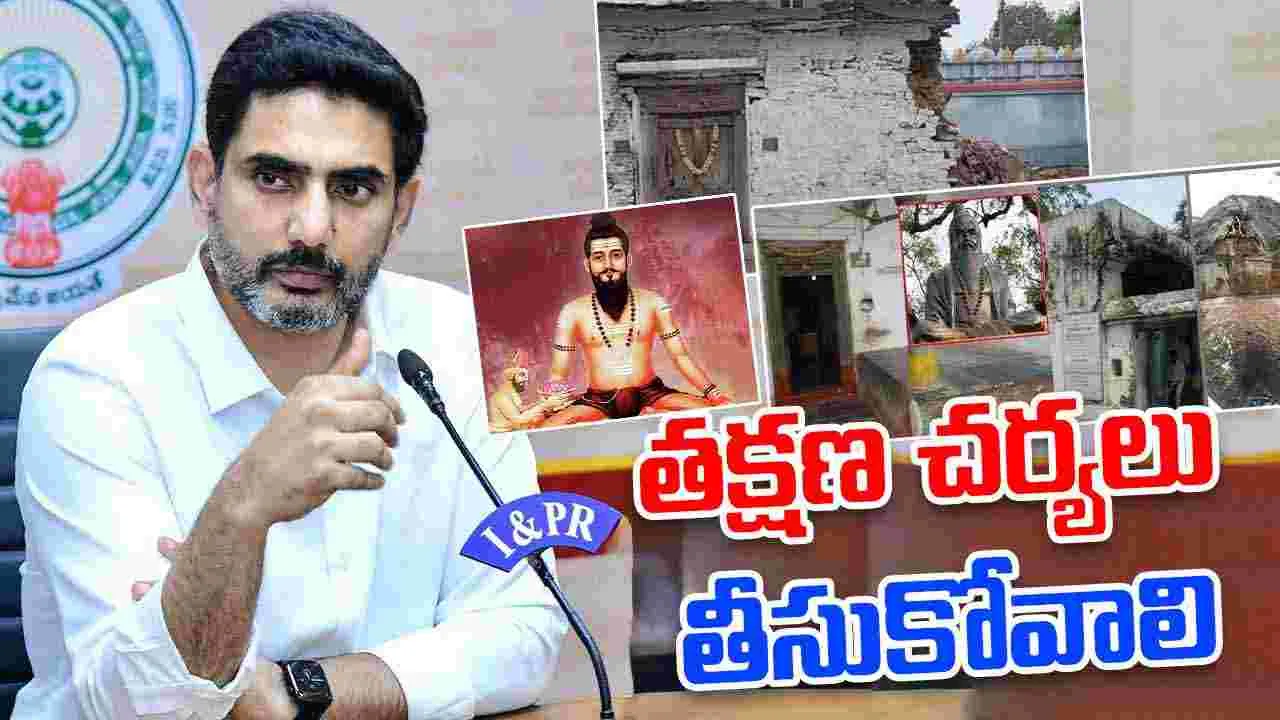 బ్రహ్మంగారిమఠంలో 16 శతాబ్దం నాటి వీరబ్రహ్మేంద్ర స్వామి వారి పురాతన నివాసం కూలిపోవడంపై మంత్రి నారా లోకేష్ 'X' వేదికగా స్పందించారు. బ్రహ్మంగారి నివాస గృహాన్ని పునరుద్ధరించాలని, మన సాంస్కృతిక వారసత్వంలోని విలువైన సంపదను కాపాడటానికి తక్షణ చర్యలు తీసుకోవాలని కడప కలెక్టర్కు ఆదేశాలు జారీ చేశారు.