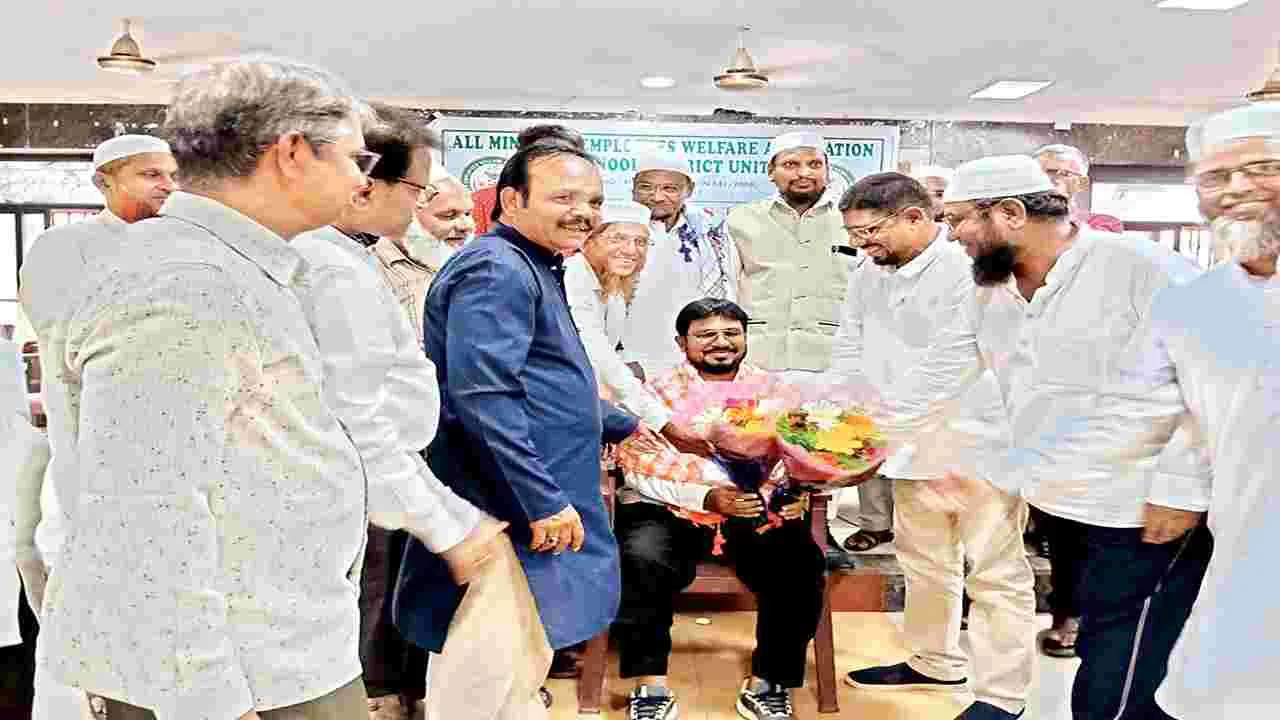కర్నూలు రూరల్ మే10(ఆంధ్రజ్యోతి): కర్నూలు మైనార్టీ ఎంప్లాయీస్ వెల్ఫేర్ అసోసియేషన (ఆల్మేవా) జిల్లా అధ్యక్షుడిగా కర్నూలు మండలం పీఆర్ ఏఈ ముక్తార్బాషాను ఏక గ్రీవంగా ఎన్నుకున్నారు. శనివారం స్థానిక కర్నూలు మండల ప్రజాపరిషత సమావేశ భవనంలో కర్నూలు జిల్లా ఆల్ మైనార్టీ ఎంప్లాయీస్ వెల్ఫేర్ అసోసియేషన నూతన కార్య నిర్వాహక కమిటీ ఎన్నికలు జరిగాయి. ఈ కార్యక్రమానికి రాష్ట్ర అధ్యక్షుడు ఇమ్రానబాషా, రాష్ట్ర కార్యవర్గం గౌరవ అధ్యక్షుడు ఎస్ఎండీ అబులైస్, రాష్ట్ర జనరల్ సెక్రటరీ అంజాద్పాషా ముఖ్యఅతిథిగా పాల్గొన్నారు. ఆల్మేవా నూతన కమిటీ లో కర్నూలు జిల్లా వర్కింగ్ ప్రసిడెంట్ మౌళీబాషా, అసోసియేట్ ప్రసిడెంట్ హుస్సేన, వైస్ప్రసిడెంట్గా జాకీర్హుస్సేన, పీఎండీ అబ్దుల్ కలీఖ్, మహమ్మద్హక్, హుస్సేనసాబ్, జిల్లా జనరల్ సెక్రటరి షేక్మహమ్మద్రియాజ్బాషాతో పాటు మరి కొంతమంది ఎన్నుకున్నారు. ఎన్నికల అధికారిగా నంద్యాల జిల్లా ప్రధానకార్యదర్శి ఎస్ఎండీ సలీమ్ వ్యవహరించారు.