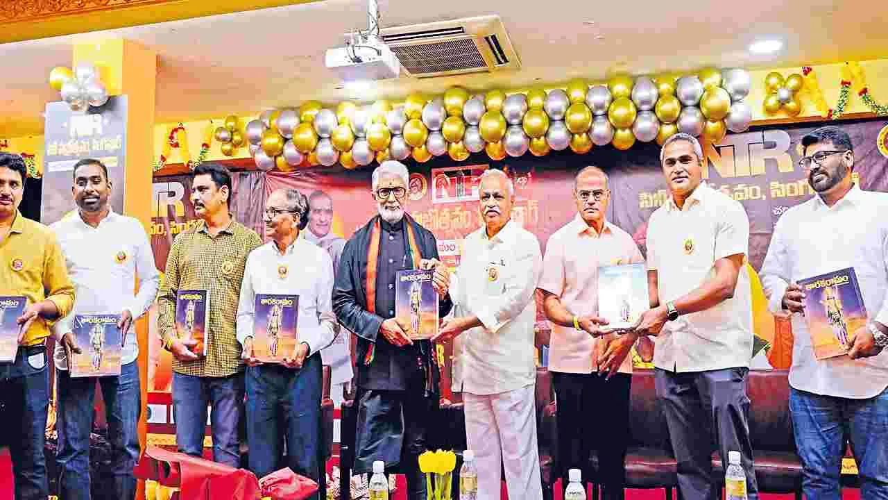 అమరావతి, జనవరి 26 (ఆంధ్రజ్యోతి): సింగపూర్లో ఎన్టీఆర్ సినీ వజ్రోత్సవాలను ఘనంగా నిర్వహించారు. సింగపూర్లోని ఆర్యసమాజ్ ఆడిటోరియంలో ఆదివారం సింగపూర్ జై ఎన్టీఆర్ టీమ్ ఆధ్వర్యంలో జరిగిన ఈ వేడుకల్లో ఎన్టీఆర్ తనయుడు నందమూరి రామకృష్ణ, మాజీ ఎంపీ మురళీమోహన్, మాజీ ఎమ్మెల్సీ టీడీ జనార్దన్ ముఖ్యఅతిథులుగా పాల్గొన్నారు. ఎన్టీఆర్ లిటరేచర్ కమిటీ సభ్యుడు భగీరథ సంపాదకత్వంలో ప్రచురించిన ‘తారకనామం’ పుస్తకం, ఎన్టీఆర్పై టీడీ జనార్దన్ రూపొందించిన ‘తెలుగువారి గుండెబలం’ పాటను అతిథులు ఆవిష్కరించారు. ఈ సందర్భంగా నందమూరి రామకృష్ణ మాట్లాడుతూ మహోన్నతమైన ఎన్టీఆర్కు కొడుకుగా పుట్టడం తన అదృష్టమన్నారు. మురళీమోహన్ మాట్లాడుతూ ఎన్టీఆర్కు భారతరత్న అవార్డును ప్రకటిస్తే తెలుగు వారికి సంతోషం కలుగుతుందన్నారు. జనార్దన్ మాట్లాడుతూ ఏపీ రాజకీయాల్లో ఎన్టీఆర్ను ధ్రువతారగా అభివర్ణించారు.
