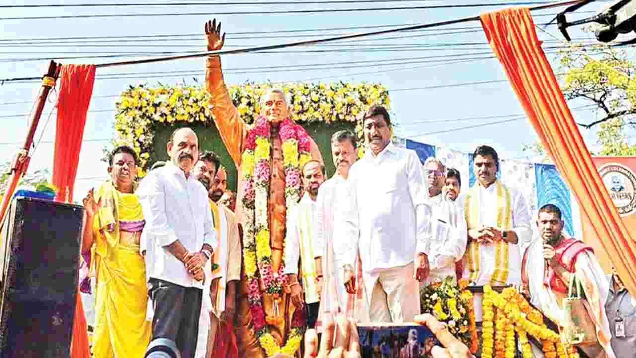 నంద్యాల నూనెపల్లి, డిసెంబరు 13 (ఆంధ్రజ్యోతి): దేశ సమగ్రాభివృద్ధికి భారత రత్న, మాజీ ప్రధాని అటల్ బిహారీ వాజ్పేయి బాటలు వేశారని బీజేపీ రాష్ట్ర అధ్య క్షుడు పీవీఎన మాధవ్ అన్నారు. వాజ్పేయి శత జయంతిని పురస్కరించుకొని శని వారం నంద్యాల పట్టణంలోని ప్రభుత్వాస్పత్రి సమీపంలో ఆపార్టీ జిల్లా అధ్యక్షుడు అభిరుచి మధు అధ్యక్షతన ఏర్పాటుచేసిన కార్యక్రమానికి ఆయనతో పాటు మం త్రులు సత్యకుమార్ యాదవ్, బీసీ జనార్దనరెడ్డి, ఎనఎండీ ఫరూక్ ముఖ్య అతి థులుగా పాల్గొన్నారు. ముందుగా వారు వాజ్పేయి విగ్రహావిష్కరించారు. అనంతరం జ్యోతి ప్రజల్వన చేసి కార్యక్రమాన్ని ప్రారంభించారు. ఈసందర్భంగా మాధవ్ మాట్లాడుతూ సిద్ధాంతాలు, విలువలతో రాజకీయం చేసిన అరుదైన మహనీయుడు వాజ్పేయి అన్నారు. శత్రుదేశంతో కూడా సంబంధం కలుపుకోవాలని, కుల, మత బేధాలు లేకుండా అందరం కలిసి ఉండాలని ముందుకెళ్లిన ఏకైక వ్యక్తి అటల్ మాత్రమేనన్నారు. మంత్రి సత్యకుమార్యాదవ్ మాట్లాడుతూ దేశంలో మొట్టమొదట హైవే రోడ్లు నిర్మించిన వ్యక్తి వాజ్పేయి అన్నారు. మంత్రి బీసీ జనార్దనరెడ్డి మాట్లాడుతూ వాజ్పేయి దేశాభివృద్ధికి మూడుసార్లు ప్రధానిగా కీలక సేవలందిచారన్నారు. ఆయన విగ్రహ ఆవిష్కరణకు రావడం ఎంతో సంతోషంగా ఉందన్నారు. మంత్రి ఎనఎండీ ఫరూక్ మాట్లాడుతూ.. వాజ్పేయిది అందరినీ కలుపుకొని వెళ్లే వ్యక్తిత్వం కలిగిన నాయకుడని కొనియాడారు. ఆయనతో సంబంధం ఉన్నట్లు వివరించారు.హైవే లు, మౌలిక వసతుల అభివృద్ధితో దేశ రూపు రేఖలు మారాయన్నారు. అంతకుముందు బీజేపీ చేపట్టిన బైక్ ర్యాలీ అట్టహాసంగా జరిగింది. డప్పు వాయిద్యాల మధ్య చిన్నారుల కోలాటం, నృత్యాలు ప్రజలను ఆకట్టుకున్నాయి. కార్యక్రమంలో బీజేపీ రాష్ట్ర ప్రధాన కార్యదర్శి రమేశనాయుడు, బీజేపీ రాయలసీమ జోనల్ ఇనచార్జి దయాకర్రెడ్డి, సీనియర్ నాయకులు విష్ణువర్ధనరెడ్డి, బుడ్డా శ్రీకాంతరెడ్డి, నంద్యాల మాజీ ఎమ్మెల్యే భూమా బ్రహ్మానందరెడ్డి, కూటమి నాయకులు, కార్యకర్తలు పాల్గొన్నారు.