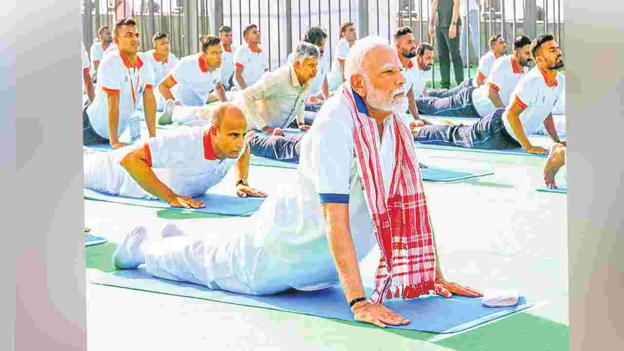 విశాఖపట్నం, జూన్ 21(ఆంధ్రజ్యోతి): ప్రపంచాన్ని ఏకం చేసే శక్తి యోగాకు ఉంది. అందుకే ఈరోజు 175కు పైగా దేశాల్లో ఈ కార్యక్రమం నిర్వహిస్తున్నారు అని ప్రధాని నరేంద్ర మోదీ అన్నారు. ఈ యోగా దినోత్సవం మానవాళికి యోగా 2.0 ప్రారంభాన్ని సూచిస్తుందని తెలిపారు. విశాఖపట్నంలో శనివారం నిర్వహించిన 11వ అంతర్జాతీయ యోగా దినోత్సవానికి (యోగాంధ్ర) ఆయన ముఖ్యఅతిథిగా హాజరయ్యారు. ఈ సందర్భంగా ప్రధాని ప్రసంగిస్తూ ‘అంతర్జాతీయ యోగా దినోత్సవం’ నిర్వహించాలని పదేళ్ల క్రితం తాను ఐక్యరాజ్య సమితిలో ప్రతిపాదిస్తే అనేక దేశాలు మద్దతు ఇచ్చాయని గుర్తుచేసుకున్నారు. యోగా అంటే వ్యాయామం ఒక్కటే కాదని, అందరినీ ఏకం చేస్తే శక్తి అని అభివర్ణించారు. కోట్లాది మంది జీవనశైలిలో యోగా అంతర్భాగంగా మారిందని చెప్పారు. అంధులు బ్రెయిలీలో యోగా గ్రంథాలు చదువుతున్నారని, సైంటిస్టులు అంతరిక్షంలో కూడా యోగా సాధన చేస్తున్నారని, ఇవన్నీ యోగా ఫలితాలేనని గర్వంగా ప్రకటించారు.