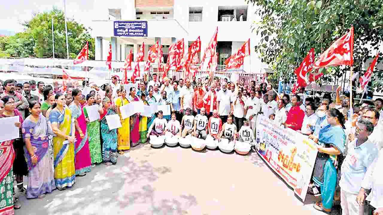 విజయవాడ, జూలై 4 (ఆంధ్రజ్యోతి): నాడు పవర్(విద్యుత్) జోలికి వచ్చి.. పవర్(అధికారం) కోల్పోయిన చంద్రబాబు ఇప్పటికైనా ఆ విషయాన్ని గుర్తుంచుకుని పవర్(విద్యుత్) జోలికి రాకుండా ఉంటే మంచిదని సీపీఎం రాష్ట్ర కార్యవర్గ సభ్యుడు సీహెచ్ బాబూరావు అన్నారు. ఏపీసీపీడీసీఎల్ ప్రధాన కార్యాలయం ప్రాంగణంలో శుక్రవారం కార్యకర్తలు స్మార్ట్మీటర్లు వద్దంటూ మెడలో ఫ్లకార్డులు ధరించి ఆందోళన చేశారు. బాబూరావు మాట్లాడుతూ, కూటమి ప్రభుత్వం ఏడాదిలోనే విద్యుత్ విషయంలో మాట తప్పి ప్రజలకు నమ్మక ద్రోహం చేసిందన్నారు. తొలి అడుగులోనే తప్పటడుగులు వేసి ప్రజలను ముంచిందన్నారు. విద్యుత్ బాదుడు ఉండదని హామీ ఇచ్చి రూ.15,485 కోట్ల సర్దుబాటు చార్జీల భారం వేయడం సరి కాదన్నారు. గతంలో స్మార్ట్ మీటర్లు పగులగొట్టాలని పిలుపునిచ్చిన కూటమి నేతలే నేడు మీటర్లు బిగించాలని ఆదేశాలు ఇవ్వడం వెనకున్న అంతర్యమేంటో చెప్పాలని ప్రశ్నించారు. రూ.1,750 కోట్లు గత ప్రభుత్వానికి ముడుపులు ఇచ్చి అదానీతో చేసుకున్న ఏడు వేల మెగావాట్ల సోలార్ విద్యుత్ ఒప్పందాన్ని కూటమి సర్కార్ కొనసాగిస్తూ ఆ పాపంలో వాటా పంచుకుంటోందని తీవ్ర ఆరోపణలు చేశారు.