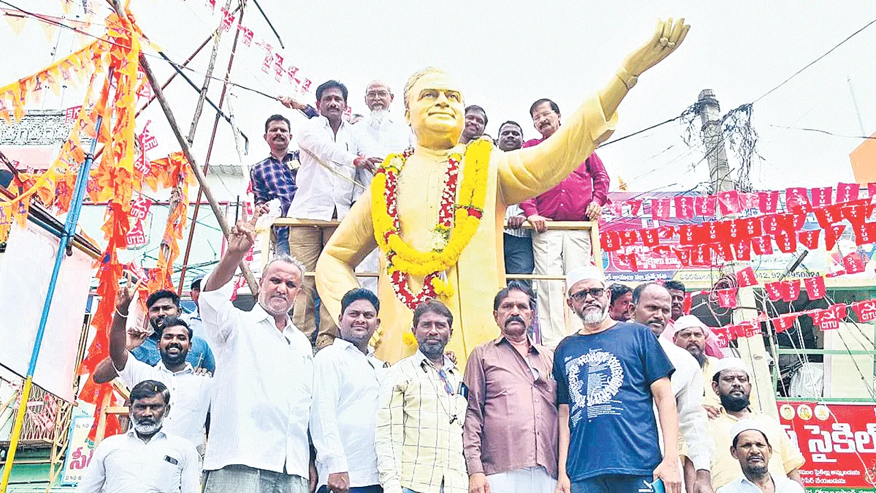 మార్కాపురం, మే 28 (ఆంధ్రజ్యోతి) : తెలుగుదేశం పార్టీ వ్యవస్థాపకులు, మాజీ ముఖ్యమంత్రి ఎన్టీ రామారావు జయంతి వేడుకలు పట్టణంలో బుధవారం ఘనంగా జరిగాయి. స్థానిక దోర్నాల బస్టాండ్లోని ఆయన విగ్రహానికి టీడీపీ నాయకులు, కార్యకర్తలు పూలమాలలు వేసి ఘనంగా నివాళులర్పించారు. ఈ సందర్భంగా అక్కడ కేక్ కత్తిరించి కార్యకర్తలు, అభిమానులకు మిఠాయిలు పంచిపెట్టారు. ఈ సందర్బంగా టీడీపీ వాణిజ్య విభాగం రాష్ట్ర ప్రధాన కార్యదర్శి వక్కలగడ్డ మల్లికార్జున్ మాట్లాడుతూ తెలుగు జాతి ఆత్మగౌరవం కోసం అన్న ఎన్టీఆర్ చివరి శ్వాసవరకు పనిచేశారన్నారు. తెలుగుజాతి ఈ భూమిపై ఉన్నన్నినాళ్లూ ఆయన జీవితం అందరికీ స్ఫూర్తిదాయకమన్నారు. కార్యక్రమంలో టీడీపీ నాయకులు నాలి కొండయ్య, వక్కలగడ్డ సుధాకర్, పఠాన్ ఇబ్రహీంఖాన్, షేక్ మౌళాలి, సయ్యద్ గఫార్, హుసేన్ఖాన్ పాల్గొన్నారు.