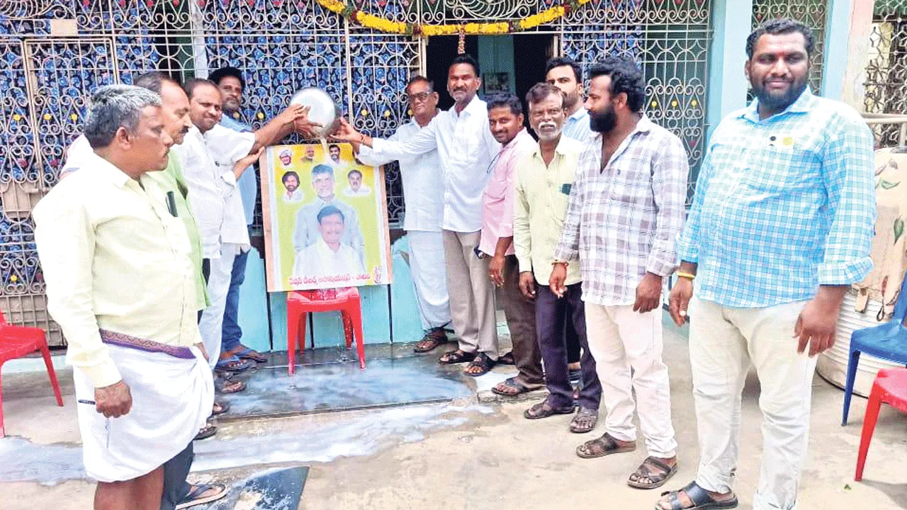 చంద్రబాబు చిత్రపటానికి పాలాభిషేకం