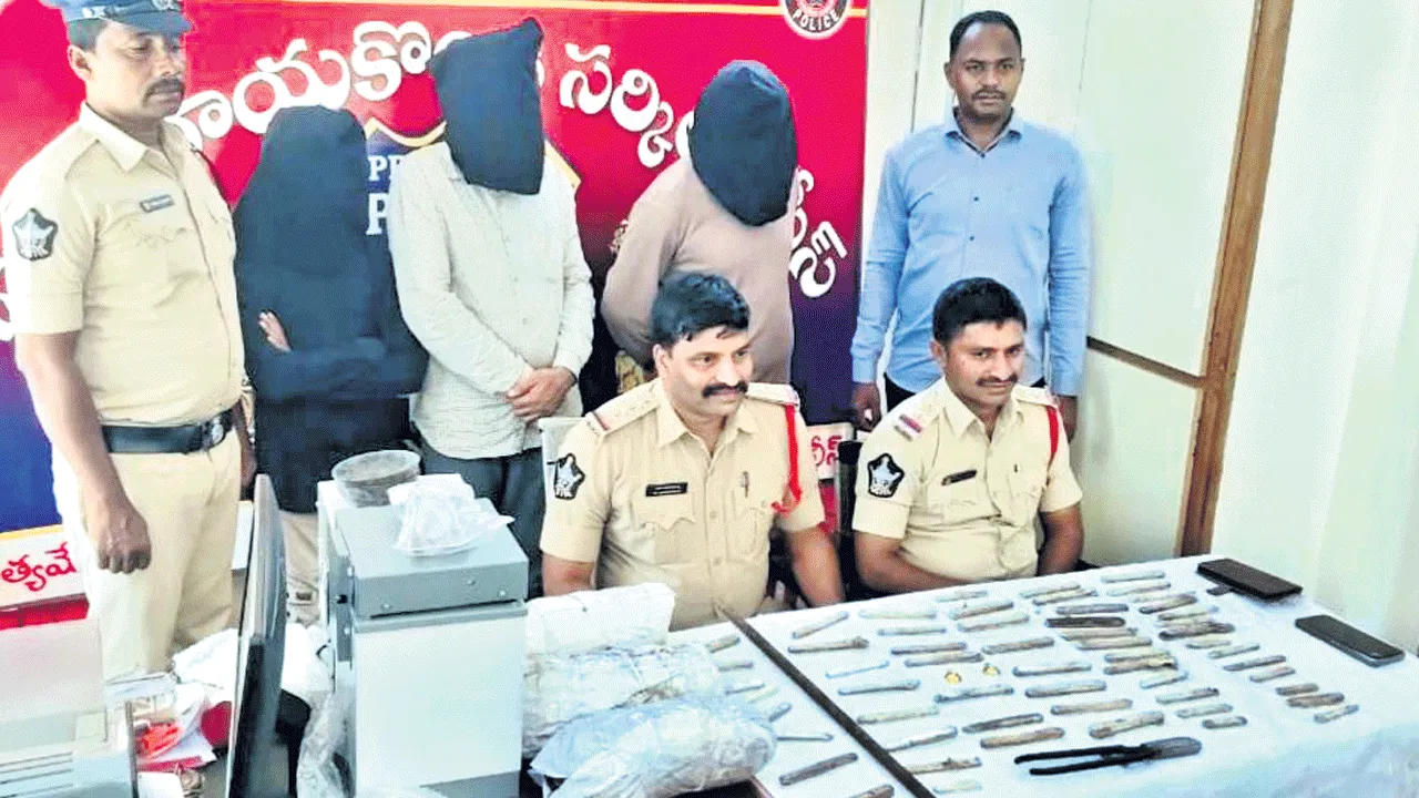 సింగరాయకొండ, జూలై 14 (ఆంధ్రజ్యోతి) : అడ్డదారిలో నగదు సంపాదించాలనే దురాశలో అక్రమంగా గంజాయి రవాణా చేస్తున్న ముగ్గురు నిందితులను జరుగుమల్లి పోలీసులు అరెస్ట్ చేశారు. నిందితుల నుంచి 3.100 కిలోల గంజాయిని, రూ.8 లక్షల విలువచేసే 8 కేజీలు వెండి (57 కడ్డీలు), 9 గ్రామల బంగారం (రూ. 81వేలు), రూ.25 వేలు విలువచేసే మోటార్ బైక్ను సీజ్ చేశారు. స్థానిక సర్కిల్ కార్యాలయంలో సోమవారం నిర్వహించిన విలేకరుల సమావేశంలో సీఐ చావా హజరత్తయ్య జరుగుమల్లి ఎస్సై బత్తుల మహేంద్రతో కలిసి వివరాలు వెల్లడించారు. సీఐ తెలిపిన వివరాలు మేరకు.. ఒంగోలు నుంచి చైన్నై వెళ్లు జాతీయ రహదారి 16 పై జరుగుమల్లి మండలం వావిలేటిపాడు క్రాస్రోడ్డు ఇటుకల బట్టీల వద్ద అక్రమ గంజాయి రావాణా చేస్తున్నరనే సమాచారంలో పోలీసులు అక్కడికి వెళ్లారు. సంఘటనా స్థలంలో ఉన్న ఉత్తరప్రదేశ్కి చెందిన ముకే్షకుమార్, గుంటూరు జిల్లా అంకిరెడ్డిపాలెంకి చెందిన ఒడ్లమాను శివారెడ్డి, ఒంగోలుకి గుర్రం జాఘవా నగర్కు ట్రంకు కార్తీక్ చెందిన ముగ్గురు వ్యక్తులను పోలీసులు అదుపులోకి తీసుకున్నారు. అనంతరం నిందితులు ముగ్గురిని పోలీసులు విచారించారు. అందులో ఉత్తరప్రదేశ్కు చెందిన ముకే్షకుమార్ సుమారు నాలుగేళ్ల నుంచి మద్దిపాడు గ్రామంలో నివాసం ఉంటున్నాడు. మద్దిపాడు హైవేపై లారీ డ్రైవర్ల నుంచి తక్కువ రేటుకి డిజిల్ కోనుగోలుచేసి ఎక్కువ రేటుకి అమ్ముతూ అక్రమంగా నగదు సంపాదిస్తూ జీవనం సాగిస్తున్నారు. డిజిల్ వ్యాపారం తగ్గడంతో మేదరమెట్ల దగ్గరలోని గ్రోత్సెంటర్ వద్ద హోటల్ను ఏర్పాటు చేయాలని నిర్ణయించుకుంటాడు. దీంతో అక్రమంగా నగదును సంపాదించడానికి గంజాయి రావాణా చేయడం ప్రారంభించారు. ఆంధ్రా, ఒరిస్సా సరిహద్దుల్లోకి వెళ్లి అక్కడ గుర్తుతెలియని వ్యక్తుల నుంచి కేజీ గంజాయిని రూ. 10వేలు చొప్పున కోనుగోలు చేసి దానిని చిన్నచిన్న ప్యాకెట్లగా చేసి ఒక్కో ప్యాకెట్ను రూ. 200 నుంచి 500 వరకు మేదరమిట్ల, ఒంగోలు పరిసర ప్రాంతాల్లో అమ్ముతూ నగదు సంసాదించుకుంటున్నారు. గుంటూరు జిల్లాకు చెందిన ఒడ్లమాను శివారెడ్డి, ఒంగోలుకి చెందిన కార్తీక్లు ముకే్షకుమార్ వద్దకు వచ్చి తరుచూ గంజాయి కోనుగోలు అమ్మకాలు చేసేవారు. ఈక్రమంలో ఇరువురు ముకే్షకుమార్ ఫోన్చేసి చెరొక కేజీ గంజాయి కావాలని అడుగుతారు. దీంతో ముకే్షకుమార్ జరుగుమల్లి మండలం వావిలేటిపాడు అడ్డరోడ్డు వద్దకు వచ్చి గంజాయి ప్యాకెట్లు తీసుకొని వెళ్లమని చెబుతాడు. దీంతో సోమవారం ముకే్షకుమార్ గంజాయి ప్యాకెట్లు తీసుకొని జరుగుమల్లి అడ్డరోడ్డుకి వచ్చాడు. కొద్దిసేపటికి గంజాయి ప్యాకెట్లు తీసుకొని వెళ్లడానికి శివారెడ్డి, కార్తీక్లు అక్కడికి వచ్చారు. ముకే్షకుమార్ నుంచి ఇరువురు గంజాయి ప్యాకెట్లు తీసుకొని వెళ్తుం