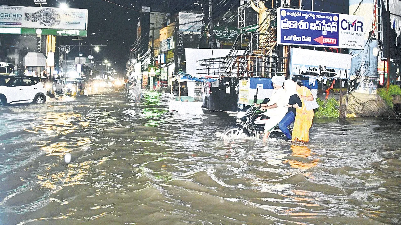 ఒంగోలు, ఆగస్టు 12 (ఆంధ్రజ్యోతి) : జిల్లాలోని తూర్పుప్రాంతంలో మంగళవారం సాయంత్రం భారీ వర్షం కురిసింది. ఒంగోలు, కొత్తపట్నం, మద్ది పాడు, ఎన్జీపాడు, సంతనూతలపాడు తదితర మండలాల్లో దాదాపు రెండు గంటలపాటు తెరపి లేకుండా పడింది. ఒంగోలు నగరం జలమయమైంది. రోడ్లు చెరువులను తలపించాయి. దాదాపు నెలన్నర రోజులుగా జిల్లాలో సరైన వర్షం లేక పూర్తి బెట్టవాతావరణం, వేసవిని తలపించేలా ఎండలు కాచాయి. రెండు రోజుల నుంచి వాతా వరణంలో మార్పు వచ్చింది. ఉష్ణోగ్రతలు తగ్గి వాతావరణం చల్లబడటంతోపాటు అక్కడక్కడా జల్లులు కూడా పడ్డాయి. గత రాత్రి పశ్చిమ ప్రాంతంలోని కొన్ని మండలాల్లో ఒక మోస్తరు వర్షం కురిసింది. మంళవారం సాయంత్రం తూర్పుప్రాంతంలో భారీ వర్షం కురిసింది. మధ్యాహ్నం మూడు గంటల నుంచే ఈ ప్రాంతంలో వాతావరణంలో మార్పు వచ్చింది. సాయంత్రం నాలుగు గంటల నుంచి జల్లులు ప్రారంభమయ్యాయి. నాలుగున్నర నుంచి ఆరున్నర వరకు ఒంగోలు నగరంతోపాటు పరిసన ప్రాంత మండలాల్లో భారీ వర్షం కురిసింది. ఈ సమయంలో మద్దిపాడులో ఏకంగా 90 మి.మీ వర్షపాతం నమోదైంది. అక్కడ ప్రధాన వీధులపై వర్షపు నీరు పారుతూ జనం ఆవస్థ పడ్డారు. అలాగే కొత్తపట్నంలో 69.75మి.మీ, ఒంగోలులో 48.25,. ఎన్జీపాడు మండలం వినోదరాయునిపాలెంలో 42.50, సంతనూతలపాడులో 25.75 మి.మీ కురిసింది. దర్శి, కురిచేడు, చీమకుర్తి, సింగరాయకొండ, పొదిలి, టంగుటూరు, జరుగుమల్లి తదితర ప్రాంతాల్లో జల్లులు పడ్డాయి. సాయత్రం వేళ అది కూడా దాదాపు రెండు, మూడు గంటలపాటు తెరపిలేకుండా వర్షం కురవడంతో ఒంగోలు నగర ప్రజానీకం తీవ్రంగా ఇబ్బంది పడ్డారు. భారీ వర్షంతో నీరంతా రోడ్లుపైకి వచ్చి చెరువులు, కాలువలను తలపించే రీతిలో పారడంతో ప్రధాన రోడ్లలో వాహనాలపై వెళ్ళేవారు ఆవస్థలు పడాల్సి వచ్చింది. చిరు వ్యాపారులు,వీధి వ్యాపారులతో పాటు సాయంత్రం పనులు ముగించుకొని ఇళ్ళకు వెళ్ళే ఉద్యోగులు, కాలేజీ విద్యార్థులు ఇతరత్రా కూడా వర్షంతో ఇక్కట్లు పడ్డారు. ఇదిలా ఉండగా ఒక వైపు రుతుపవనాల ప్రభావం మరో వైపు బంగాళాఖాతంలోఆల్పపీడన ప్రభావంతో వాతావరణంలో ఈమార్పు కపిస్తుండగా మరో మూడు నాలుగు రోజులు వర్షాలు కురిసే అవకాశం ఉన్నట్లు వాతావరణ శాఖ సమాచారాన్ని బట్టి తెలుస్తున్నది.