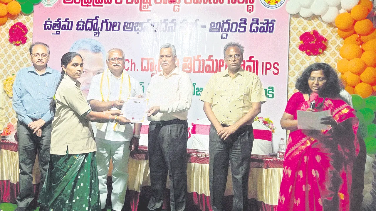 అద్దంకి, సెప్టెంబరు 10 (ఆంధ్రజ్యోతి): రానున్న రెండుమూడేళ్లలో అద్దంకిలో అధునా తన బస్టాండ్ నిర్మించనున్నట్లు ఆర్టీసీ వైస్ చైర్మన్, మేనేజింగ్ డైరెక్టర్ ద్వారకా తిరుమల రావు అన్నారు. అద్దంకిలోని ఆర్టీసీ బస్టాండ్, గ్యారేజీలను బుధవారం సాయంత్రం ఆయన పరిశీలించారు. ముందుగా బస్టాండ్ ప్రాంగ ణంలో మొక్కను నాటారు. కార్మికులతో మాట్లాడి, పలు విభాగాలలో ఉత్తమ కార్మికుల ను అభినందించారు. ఈ సందర్భంగా ఆయన మాట్లాడుతూ అద్దంకిలో ప్రస్తుతం ఉన్న దుకాణాల వలన మంచి ఆదాయం వస్తోంద న్నారు. విశాలమైన స్థలం ఉన్నందున ముందు వైపు షాపింగ్ కాంప్లెక్స్ నిర్మించి వెనుక వైపు ఆధునాతన వసతులతో ఆర్టీసీ బస్టాండ్ను నిర్మించనున్నట్లు తెలిపారు. దీని ద్వారా ఆర్టీసీ ఆదాయం మరింత పెరుగుతుందన్నారు. స్త్రీశక్తి పథకం అమలులో పక్కరాష్ట్రంలో వివిధ సమ స్యలు ఉత్పన్నం కాగా, మనరాష్ట్రంలో విజయ వంతమైందన్నారు. గతంలో ఆర్టీసీ బస్సులలో 40 శాతం మంది మహిళలు ప్రయాణి స్తుండగా ప్రస్తుతం 65 శాతానికి చేరినట్లు తెలిపారు. మరిన్ని బస్సులలో మహిళాశక్తి పథకం అమలుచేసేలా సీఎం చంద్రబాబు నాయుడు నిర్ణయం తీసుకోనున్నార న్నారు. ప్రయాణికులు సంఖ్య పెరిగినందున అన్ని బస్టాండ్ లలో వసతులు పెంచుతున్నామన్నారు. రాష్ట్ర వ్యాప్తంగా కొత్తగా 2550 ఎలక్ర్టిక్ బస్సులు కొనుగోలు చేస్తున్నట్లు తెలిపారు. అప్పటి వరకు ఎలాంటి ఇబ్బందులు లేకుండా ఉండేందుకే ఉన్న బస్సులనే ఎక్కువ ట్రిప్పులు తిప్పేవిధంగా చర్యలు చేపడుతు న్నామన్నారు. బస్సుల మెయింటినెన్స్ కూడా పెంచుతున్నామన్నారు. వ్యయం తగ్గించడంతో పాటు నాన్టికెట్ ఆదాయం పెంచేందుకు కూడా చర్యలు చేపడుతున్నామన్నారు. కార్మికుల సంక్షేమం కోసం ప్రభుత్వం నుండి పూర్తి సహకారం అందుతుందన్నారు. ఇప్పటికే మెరుగైన వైద్య వసతులు కల్పించి 1200 మంది కార్మికుల ప్రాణాలు కాపాడినట్లు తెలిపారు. స్త్రీశక్తి పధకం అమలు తరువాత ప్రయాణికుల సంఖ్య బాగా పెరిగి బస్సులు తరచూ మరమ్మతులకు గురవుతున్నాయ న్నారు. ఆయిల్ ఎక్కువ ఖర్చు అవుతుందని అద్దె బస్సుల యజమానులు వినతిపత్రం అందజేశారు. ఈ సందర్భంగా ఆర్టీసీ అధికా రులు ఎండీ ద్వారకాతిరుమలరావును సన్మా నించారు. కార్యక్రమంలో నెల్లూరు జోనల్ చైర్మన్ సన్నపురెడ్డి సురేష్రెడ్డి, ఈడీ (ఆపరే షన్స్) అప్పలరాజు, నెల్లూరు ఈడీ నాగేంద్ర ప్రసాద్, డీపీటీవో సామ్రాజ్యం, సీటీఎం రవికాంత్, డీఎం బెల్లం రామ్మోహనరావు, అసిస్టెంట్ డీఎం మహబూబి తదితరులు పాల్గొన్నారు.