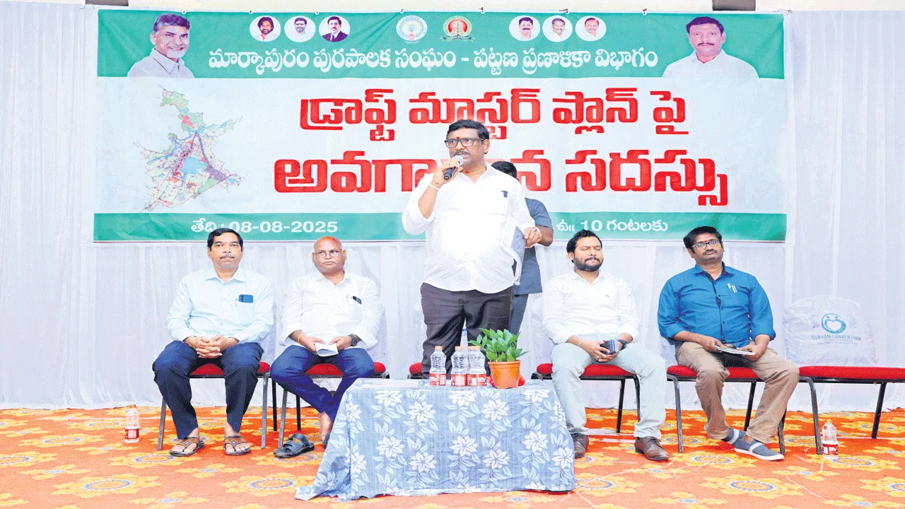 మార్కాపురం, ఆగస్టు 8 (ఆంధ్రజ్యోతి): భవిష్యత్తు అవసరాలకు అనుగుణంగా నూతన మాస్టర్ ప్లాన్ను రూపొందించామని మార్కాపురం శాసనసభ్యులు కందుల నారాయణరెడ్డి అన్నారు. స్థానిక కాలేజీ రోడ్డులోని శుభం కన్వెన్షన్ హాలులో శుక్రవారం మార్కాపురం మున్సిపాలిటీ పట్టణ ప్రణాళిక విభాగం, ఒంగోలు అర్బన్ డెవల్పమెంట్ అఽథారిటీ(ఒడా)లు రూపొందించిన డ్రాఫ్ట్ మాస్లర్ ప్లాన్పై అవగాహన కార్యక్రమం జరిగింది. ఈ సందర్భంగా ఎమ్మెల్యే నారాయణరెడ్డి మాట్లాడుతూ 2002వ సంవత్సరంలో మాస్టర్ ప్లాన్ను రూపొందించారన్నారు. మళ్లీ 20 సంవత్సరాలకు నూతన ప్లాన్ను తయారు చేయాల్సివున్నా అప్పట్లో కరోనా పరిస్థితుల వలన వాయిదా పడిందన్నారు. 23 సంవత్సరాల తర్వాత మళ్లీ మాస్టర్ ప్లాన్ ఏర్పాటు చేసకుంటున్నామన్నారు. ఈ ప్లాన్ 2041 వరకు భవిష్యత్తు అవసరాల దృష్ట్యా రూపొందించడం జరిగిందన్నారు. ముఖ్యంగా త్వరలో మార్కాపురం జిల్లా కాబోతుందన్నారు. ఈ నేపథ్యంలో రహదారులు పూర్తిస్థాయిలో అభివృద్ధి చేయాల్సి ఉందన్నారు. పెరుగుతున్న వాహనాల సంఖ్య, ట్రాఫిక్ ఇబ్బందుల నేపథ్యంలో ప్రధాన రహదారులు ఎక్కడా 60 అడుగులకు లోపు ఉండే అవకాశం లేదన్నారు. ట్రాఫిక్ క్రమబద్ధీకరణ చేయాలంటే రహదారులను విస్తరించాల్సి ఉందన్నారు. ప్రజలు ఈ విషయాన్ని గమనించాలన్నారు. పట్టణ అభివృద్ధే ముఖ్యమని రాజకీయాలకు తాము ఎక్కడా చోటు ఇచ్చే ప్రసక్తేలేదని అన్నారు. ఆక్రమణల విషయంలో స్వపక్షానికి చెందిన వారైనా ఉపేక్షించేదిలేదన్నారు. అన్ని ప్రాంతాల్లోనూ అప్రూవల్ లేని నిర్మాణాలు ఉండకూడదన్నారు. అనుమతులు లేని లేఅవుట్లు ఉంటే ఎల్ఆర్ఎస్ పథకం ద్వారా క్రమబద్ధీకరించుకోవాలన్నారు. ప్రస్తుతం తయారు చేసిన మాస్టర్ ప్లాన్లో మార్కాపురం, తర్లుపాడు, పెద్దారవీడు మండలాల్లోని పలు గ్రామాలు ఉన్నాయన్నారు. కానీ ఆయా గ్రామాల ప్రజల అభిప్రాయాలను సేకరించిన తరువాతే వాటిని పట్టణంలో కలిపేందుకు నిర్ణయిస్తారన్నారు. ఎక్కడా బలవంతంగా గ్రామాలను కలిపే చర్యలు ఉండవన్నారు. మాస్టర్ ప్లాన్పై ఎలాంటి అభ్యంతరాలు ఉన్నా మున్సిపల్ అధికారులకు ఫిర్యాదు చేయవచ్చన్నారు. ఈ కార్యక్రమంలో ఒంగోలు అర్బన్ డెవల్పమెంట్ అఽథారిటీ (ఒడా) ప్లానింగ్ అధికారి బాబూరావు, మున్సిపల్ కమిషనర్ డీవీఎస్ నారాయణరావు, తహసీల్దార్ కె.చిరంజీవి, పట్టణ ప్రజలు పాల్గొన్నారు.