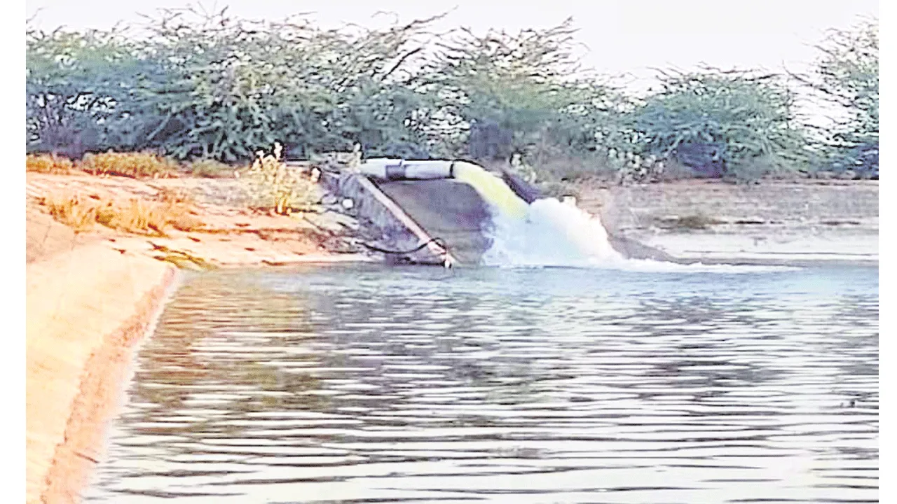 దొనకొండ, మే 27(ఆంధ్రజ్యోతి) : గ్రామాల్లోని ప్రజలకు తాగునీటి అవసరాల నిమిత్తం ప్రభుత్వం సాగర్ కెనాల్కు విడుదల చేసిన సాగర్ జలాలు మండలంలోని చందవరం సమీపంకు చేరుకున్నాయి. చందవరం గ్రామ సమీపంలోని సాగర్ కెనాల్ వద్ద నిర్మించిన చందవరం-1, -2 సాగర్ జలాల స్టోరేజీలకు కెనాల్ నుంచి విద్యుత్ మోటార్ల ద్వారా పంపింగ్ చేస్తున్నారు. మండలంలోని 29 గ్రామాలకు నీటి సరఫరా చేసే చందవరం-1 స్టోరేజీలో 68 శాతం నీళ్లు ఉన్నాయని నూరుశాతం నింపేందుకు చర్యలు చేపట్టామని ఆర్డబ్ల్యూఎస్ ఏఈ కిరణ్కుమార్ చెప్పారు. కొనకనమిట్ల, హెచ్ఎంపాడు, పొదిలి మండలాల్లోని 127 గ్రామాలకు సరఫరా జరిగే చందవరం-2 స్టోరేజీలో 50శాతం నీళ్లు ఉన్నాయని కెనాల్లో నీటి సరఫరా జరిగే వారం రోజుల్లో నూరుశాతం స్టోరేజీ నింపుతామని ఆర్డబ్ల్యూఎస్ ఏఈ శ్రీకాంత్ తెలిపారు.