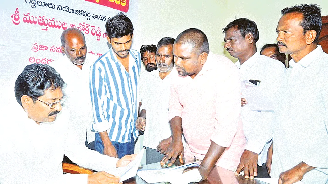 నిరంతరం ప్రజాసమస్యల పరిష్కార దిశగా ప్రజాదర్బార్ నిర్వహిస్తున్నట్లు ఎమ్మెల్యే ముత్తుముల అశోక్రెడ్డి అన్నారు. శనివారం పార్టీ కార్యాలయంలో నియోజకవర్గంలోని గ్రామాల నుంచి ప్రజలు వచ్చి వినతిపత్రాలను ఎమ్మెల్యే ముత్తుముల దృష్టికి తీసుకువచ్చారు.