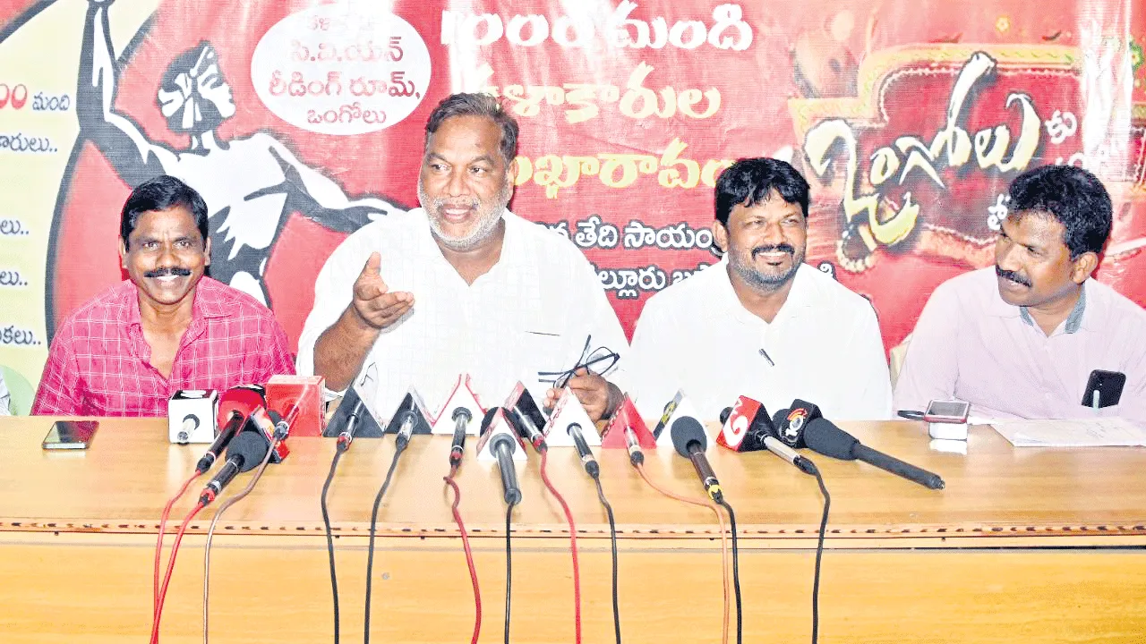 ఒంగోలు కార్పొరేషన్, ఆగస్టు (ఆంధ్రజ్యోతి) : అక్షరాన్ని నిషేధిస్తే ఆగదని, ప్రజాకళలతోనే సమాజమార్పు సాధ్యమని ప్రజాకవి, రచయిత, గాయకులు గోరేటి వెంకన్న చెప్పారు. సీపీఐ రాష్ట్ర మహాసభలను పురస్కరించుకుని నిర్వహిస్తున్న కళా ఉత్సవాలలో పాల్గొనేందుకు ఆయన శుక్రవారం ఒంగోలు విచ్చేశారు. స్థానిక మీడియా కెమెరామెన్ అసోసియేషన్ హాలులో ఏర్పాటు చేసిన విలేకరుల సమావేశంలో ఆయన మాట్లాడారు. కళలు, సాంకేతికత, పెట్ట్టుబడి ఇవి మూడు కలవకూడదన్నారు. కళ అనేది అంతర్లీనంగా ఉంటూప్రజలను ఆలోచింపచేసేలా, ఆనందింప చేసేలాఉండాలన్నారు. నేటి సినిమాలు బూతు సాహిత్యంతో నిండుకొని, ఇవే అసలైన కళలు అనే తీరుగా భ్రమింపచేస్తున్నాయని విమర్శించారు. సినిమా చాలా గొప్పదని, అదే సినీరంగంలో తమన్, బోస్, సత్యజిత్రే, హృతిక్ ఘటక్ వంటి గొప్ప కళాకారులు, దర్శకులు కూడా ఉన్నారని చెప్పారు. నేటి తరంలోని కొన్ని సినిమాలువికృతం, భయానకం, రాచరికంతో కూడిన హింసా సంస్కృతిని పెంచి పోషిస్తున్నాయన్నారు. నిజమైన కళకు, మంచి పుస్తకానికి, ఆలోచింపచేసే రచనలకు ఎల్లపుడూ ఆదరణ ఉంటుందని వెంకన్న తెలిపారు. సీపీఐ రాష్ట్ర కార్యదర్శివర్గ సభ్యులు గుజ్జుల ఈశ్వరయ్య మాట్లాడుతూ సీపీఐ 100ఏళ్ల పోరాట చరిత్రను పురస్కరించుకుని ఒంగోలులో నిర్వహిస్తున్న రాష్ట్ర మహాసభల సందర్భంగా కళా ఉత్సవాలు విజయవంతంగా నిర్వహిస్తున్నారన్నారు. ఈనెల 23వ తేదీన భారీ ప్రజా ప్రదర్శనలో బహిరంగ సభకు వెయ్యి మంది కళాకారులతో, 100 గొంతుకలతో, వంద పాటలతో, వంద డప్పులతో, వంద కోలాట కళాకారులతో సాంస్కృతిక కార్యక్రమాలు నిర్వహిస్తున్నట్లు తెలిపారు. సభకు ముఖ్య అతిఽథులుగా సీపీఐ జాతీయ కార్యదర్శి డి.రాజా, తెలంగాణ రాష్ట్ర కార్యదర్శి కూనంనేని సాంబశివరావు, జాతీయ కార్యదర్శి కే నారాయణ, రాష్ట్ర కార్యదర్శి కే రామకృష్ణతోపాటు పలువురు ముఖ్యలు పాల్గొంటున్నట్లు తెలిపారు. సమావేశంలో ప్రజా నాట్యమండలి రాష్ట్ర అధ్యక్షులు చంద్రనాయక్, ప్రధాన కార్యదర్శి చిన్నం పెంచలయ్య, రాష్ట్ర కార్యనిర్వాహక కార్యదర్శి రామకృష్ణ, పాట వెంకన్న, శ్రీశైలం గౌడ్ పాల్గొన్నారు.