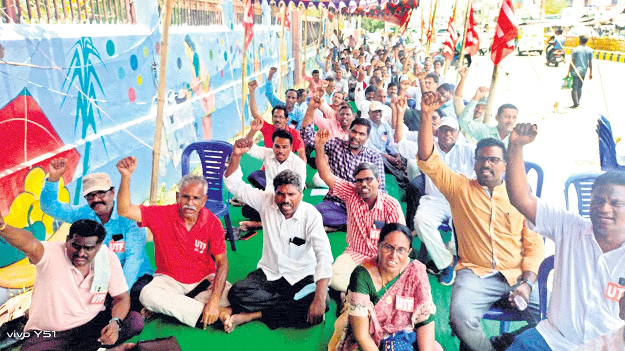 ఒంగోలు విద్య, మే 12 (ఆంధ్రజ్యోతి) : స్పష్టమైన ఉత్తర్వులు లేకుండా రోజుకో ఆలోచనతో జరుగుతున్న ఉపాధ్యాయుల సర్దుబాటు ప్రక్రియ అందరినీ ఆందోళనకు గురిచేస్తున్నదని యూటీఎఫ్ రాష్ట్ర గౌరవాధ్యక్షుడు కె.శ్రీనివాసరావు ఆరోపించారు. 117 జీవోను రద్దుచేసి కొత్త జీవోను విడుదల చేసి పాఠశాలల పునర్ వ్యవస్థీకరణ, టీచర్ల సర్దుబాటు చేపట్టాలని ఆయన ప్రభుత్వాన్ని డిమాండ్ చేశారు. పాఠశాలల పునర్వ్యవస్థీకరణ, బదిలీలు, ఉద్యోగోన్నతులు తదితర సమస్యలను పరిష్కరించకుండా ప్రభుత్వం అనుసరిస్తున్న వైఖరికి నిరసనగా సోమవారం యూటీఎఫ్ జిల్లా శాఖ ఆధ్వర్యంలో కలెక్టరేట్ ఎదుట ధర్నా నిర్వహించారు. ఈ సందర్భంగా శ్రీనివాసరావు మాట్లాడుతూ వారంవారం గుర్తింపు పొందిన ఉపాధ్యాయ సంఘాల నాయకులతో పాఠశాల విద్య కమిషనర్ సమావేశాలు నిర్వహించినా సమస్యలు పరిష్కారానికి నోచుకోవడం లేదన్నారు. టీచర్ల ఉద్యోగోన్నతుల జాబితాల్లో తప్పులు ఇప్పటికీ కొనసాగుతూనే ఉన్నాయని తెలిపారు. ప్రాథమిక పాఠశాలల్లో 1:20 నిష్పత్తి ప్రకారం ఉపాధ్యాయులను కేటాయించాలని యూటీఎఫ్ జిల్లా ప్రధాన కార్యదర్శి డి.వీరాంజనేయులు డిమాండ్ చేశారు. స్కూల్ అసిస్టెంట్లను ప్రాథమికోన్నత, ఉన్నత పాఠశాలల్లోనే నియమించాలన్నారు. ధర్నాలో జిల్లా అధ్యక్షుడు షేక్ అబ్దుల్హై, నాయకులు ఐ.వి.రామిరెడ్డి, జి. ఉమా మహేశ్వరి, చిన్నస్వామి, డి.రాజశేఖర్, పి.వెంకటేశ్వర్లు, ఎం.శ్రీను, టి.రమణారెడ్డి, సిహెచ్.ప్రభాకర్రెడ్డి, బాల వెంకటేశ్వర్లు, ఎం.రాము తదితరులు పాల్గొన్నారు.