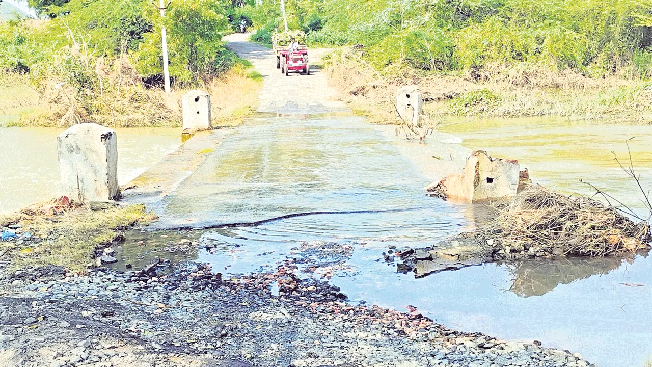 కోతకు గురైన అలుగువాగు వంతెన