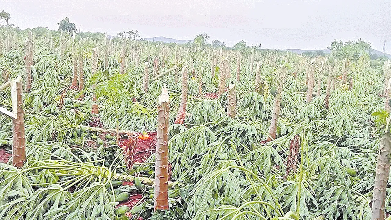 దెబ్బతిన్న బొప్పాయి, అరటి తోటలు
