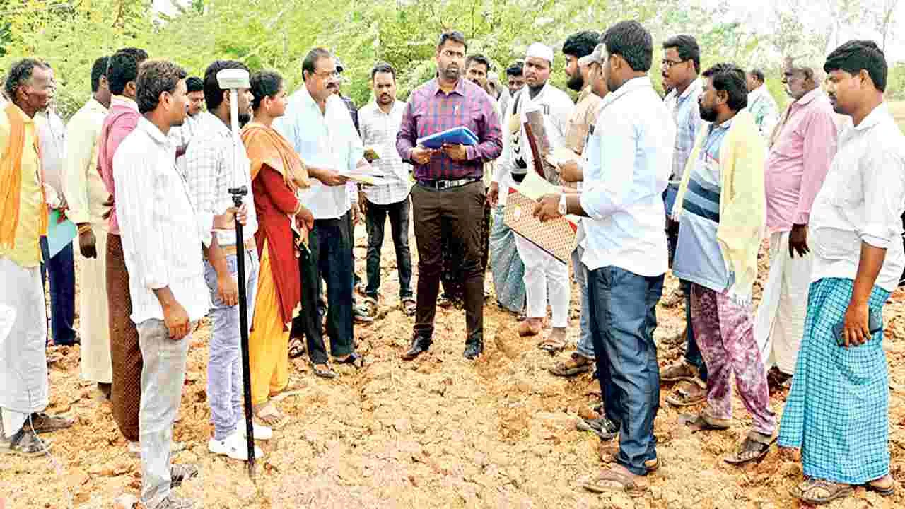 కోసిగి, మే 29 (ఆంధ్రజ్యోతి): మండలంలోని దుద్ది గ్రామం రీసర్వేలో పైలట్ ప్రాజెక్టుగా ఎన్నికైనందున రీసర్వే పనులు వేగవంతం చేయాలని ఆదోని సబ్కలెక్టర్ మౌర్యభరద్వాజ్ అన్నారు. గురువారం ఆయన దుద్ది గ్రామ పొలాల్లో రీసర్వే పనులను తనిఖీ చేశారు. రైతులు, సర్వేయర్లను సమస్యలు అడిగి తెలుసుకున్నారు. ఈ సందర్భంగా ఆయన మాట్లాడుతూ రీసర్వేలో సమస్యలు ఏమైనా ఉంటే తమదృష్టికి తీసుకురావాలని రెవెన్యూ పరిధిలో ఉంటే ఆ సమస్యలను పరిష్కరిస్తామన్నారు. అనంతరం దుద్ది గ్రామ సచివాలయంలో తనిఖీచేసి రికార్డులను పరిశీలించారు. దుద్ది గ్రామ సచివాలయ పరిధిలోని రైతుల వివరాలను సర్వేయర్లను అడిగి తెలుసుకున్నారు. ఐరంగల్ గ్రామ సమీపంలో రైల్వే ఓవర్ బ్రిడ్జి నిర్మాణం కోసం భూసేకరణ నిమిత్తం గ్రామంలో ఏర్పాటు చేసిన గ్రామసభలో రైతులతో సమీక్ష సమావేశం నిర్వహించారు. ఈ సందర్బంగా మౌర్యభరద్వాజ్ మాట్లాడుతూ రైల్వే ఓవర్ బ్రిడ్జి నిర్మాణం కోసం భూములు కోల్పోతున్న రైతులను కేంద్ర, రాష్ట్ర ప్రభుత్వాలు న్యాయం చేస్తాయని అన్నారు. రైతులందరూ సహకరించి భూసేకరణ సవ్యంగా జరిగేలా చూడాలన్నారు. ఇప్పటికే ఐరంగల్ గ్రామ సమీపంలో రైల్వే ఓవర్ బ్రిడ్జి నిర్మాణ పనులు చురుగ్గా సాగుతున్నా యని తెలిపారు. ఆయన వెంట తహసీల్దార్ రుద్రగౌడు, డిప్యూటీ ఇనస్పెక్టర్ ఆఫ్ సర్వేయర్ వేణుసూర్య, సర్పంచ రామాంజనేయులు, సర్వేయర్లు శ్రీనివాసులు, వీఆర్వోలు యేసుదాసు, శ్రీనివాసులు, బసవరాజు, రైతులు తదితరులు ఉన్నారు.