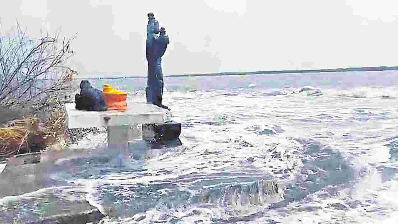 హంసలదీవిలో పవిత్ర కృష్ణా సంగమ ప్రదేశంలో ఉన్న కృష్ణవేణమ్మ విగ్రహాన్ని సముద్రపు నీరు తాకింది. సముద్రం ఐదు మీటర్ల మేరకు ముందుకు రావడంతో ఈ ప్రదేశం పూర్తిగా జలమయమై భక్తుల్లో ఆందోళన నెలకొంది.