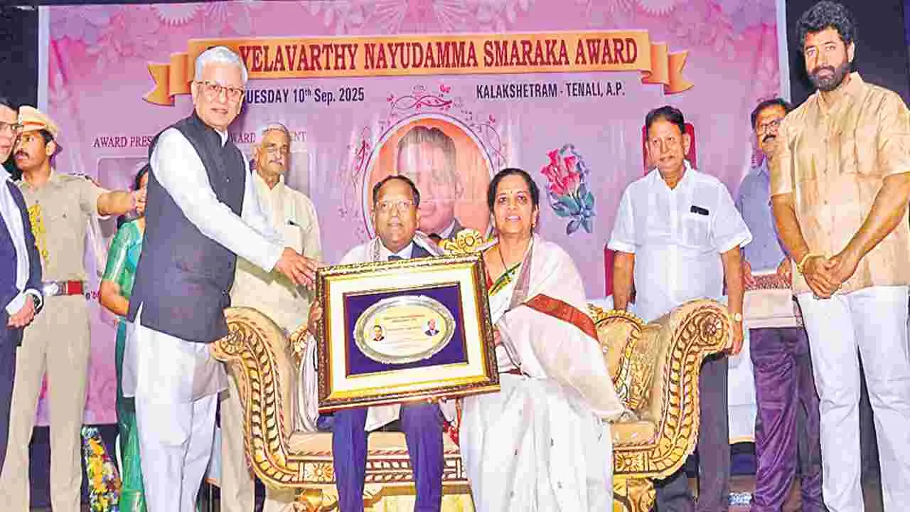 తెనాలి అర్బన్, సెప్టెంబరు 10(ఆంధ్రజ్యోతి): వికసిత భారత్ కోసం శాస్త్రవేత్తలు, ఆర్థిక నిపుణులు కృషి చేస్తున్నారని తెలంగాణ గవర్నర్ జిష్ణుదేవ్వర్మ అన్నారు. బుధవారం దివంగత శాస్త్రవేత్త యలవర్తి నాయుడమ్మ స్మారక పురస్కారం ప్రదానోత్సవం గుంటూరు జిల్లా తెనాలిలో జరిగింది. కేంద్ర ఆర్థిక శాఖ కార్యదర్శి మద్దిరాల నాగరాజుకు ఈ అవార్డును జిష్ణుదేవ్వర్మ ప్రదానం చేశారు. ఈ సందర్భంగా తెలంగాణ గవర్నర్ మాట్లాడుతూ.. శాస్త్రవేత్తలు, ఆర్థిక నిపుణుల లక్ష్యం సమాజం బాగుండాలన్నదేనని అన్నారు. తెనాలి రామకృష్ణ కవి ప్రాంతానికి తాను రావడం ఆనందంగా ఉందన్నారు. తాను త్రిపుర ఉపముఖ్యమంత్రిగా ఉన్న సమయంలో బడ్జెట్ ప్రవేశ పెట్టేందుకు ఐఏఎస్ అధికారి నాగరాజు సహకారం అందించారని చెప్పారు. పురస్కార గ్రహీత, ఐఏఎస్ అధికారి నాగరాజు మాట్లాడుతూ.. నాయుడమ్మ ప్రపంచస్థాయి శాస్త్రవేత్త అని కొనియాడారు. ఆయన పేరిట పురస్కారాన్ని అందుకున్న తనపై బాధ్యత మరింత పెరిగిందన్నారు. ఈ కార్యక్రమంలో శాస్త్రవేత్త స్వర్ణ వి కాంత్, నాయుడమ్మ అవార్డు ఫౌండేషన్ చైర్మన్ యడ్లపాటి రఘునాఽథబాబు, వైస్ చైర్మన్ కొత్త సుబ్రహ్మణ్యం ప్రసంగించారు.