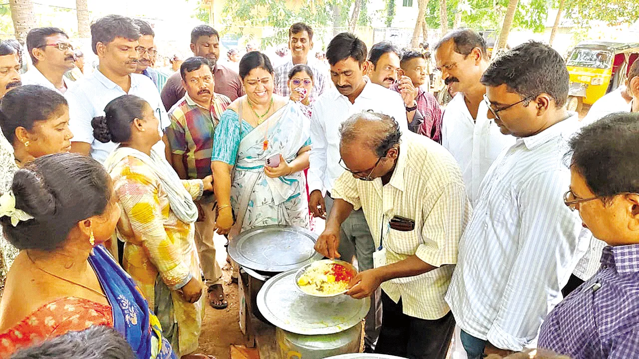 రణస్థలం, ఆగస్టు 5 (ఆంధ్రజ్యోతి): రేషన్ డిపోల నిర్వహణ బాగులేదని, డిపోల వద్ద వివరా లతో కూడిన బోర్డులు ఏర్పాటు చేయకపోవడం ఏమిటని రాష్ట్ర పుడ్కమిటీ సభ్యుడు బి.కాంతారావు ఆగ్రహం వ్యక్తంచేశారు. మంగళవారం పైడిపేట, పతివాడ పాలెం, జేఆర్పురం రేషన్ డిపో లను ఆకస్మికంగా తనిఖీ చేపట్టారు. జేఆర్పురం రేషన్ డిపో రికార్డులను పరిశీలించగా 20 బస్తాల వరకు బియ్యం తక్కువ ఉన్నట్లు గుర్తించారు. పతివాడపాలెం, పైడిపేట రేషన్డిపోల్లో రికార్డులు సక్రమంగా లేవని, రేషన్ డిపోల వద్ద ధరల పట్టికలు ఏర్పాటు చేయలేదని ఆయన మండిపడ్డారు. సంబంధిత రేషన్ డిపోల డీలర్లకు మెమోలు జారీ చేయాలని అధికారులకు ఆదేశించారు. పిన్నింటిపేట అంగన్వాడీ కేంద్రం, రణస్థం జడ్పీ హైస్కూల్ ను సందర్శించారు. మధ్యాహ్న భోజన పథకాన్ని పరిశీలించారు. పోషక విలువలతో కూడిన ఆహారం ఇవ్వాలని సూచించారు.