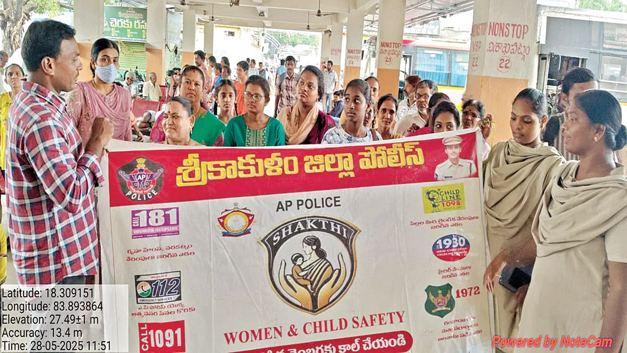 శ్రీకాకుళం క్రైం, మే 28 (ఆంధ్రజ్యోతి):శ్రీకాకుళం, టెక్కలి, కాశీబుగ్గ, పోలీస్ సబ్డివిజన్ పరిధిలో ఎస్పీ కేవీ మహేశ్వరరెడ్డి ఆదేశాల మేరకు బుధవారం శక్తిటీమ్ సిబ్బంది యాప్పై మహిళలు, విద్యార్థులకు అవగాహన కల్పించారు. రాష్ట్ర ప్రభుత్వం మహిళల భద్రత, రక్షణ కోసం అందుబాటులోకి తీసుకొచ్చిన శక్తియాప్ ఉపయోగం, సేవలు, నిక్షిప్తం, రిజిస్ర్టేషన్ గురించి జిల్లాలో మహిళలు, విద్యార్థులకు విస్తృత స్థాయిలో శక్తి బృందాలు అవగాహన కల్పించాయి.ఈ సందర్భంగా మాట్లాడుతూ శక్తి యాప్ టీమ్ సిబ్బంది మాట్లాడుతూ యాప్పై ప్రయోజనాలు సేవలు తెలుసుకో వాలన్నారు. మహిళలు అత్యవసర పరిస్థితుల్లో పోలీస్ స్టేషన్కు వెళ్లాల్సిన అవసరం లేకుండా శక్తి యాప్ ద్వారా 100, 112, ఎస్ఓఎస్ బటన్ ద్వారా ఫిర్యాదు చేయవ చ్చునన్నారు. మహిళలకు ఆపద సమయంలో అత్యవసర సాయం అందించేందుకు శక్తియాప్ ఒక ఆయుధంగా పనిచేస్తుందన్నారు.