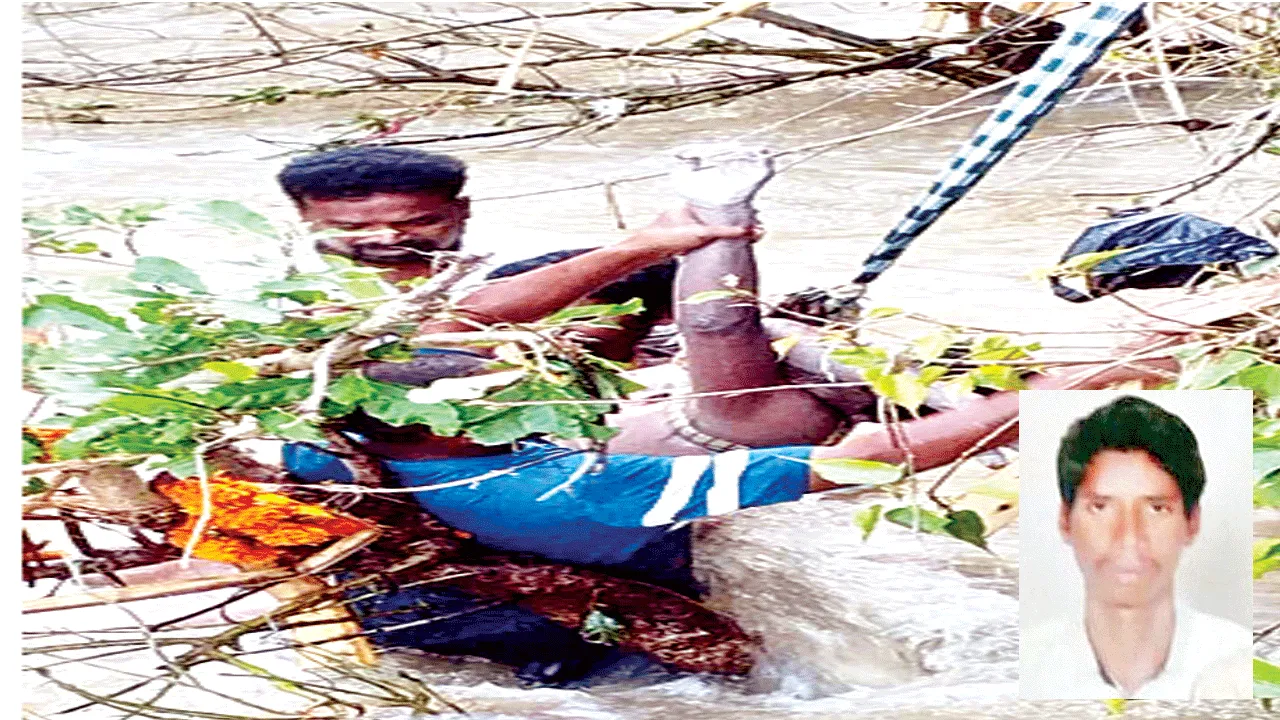 పలాస రూరల్, అక్టోబరు 30 (ఆంధ్రజ్యోతి): పలాస మండలం కే దారిపురం వద్ద వరహాలగెడ్డలో బు ధవారం మధ్యాహ్నం గల్లంతైన వ్య క్తి మృతదేహం గురువారం సాయం త్రం నాటికి బ్రాహ్మణతర్లా ప్రధాన గెడ్డ అయిన వరహాలగెడ్డలో లభ్య మైంది. వివరాల్లోకి వెళ్తే.. పలాస మండలం కేదారిపురం వరహాలగెడ్డ లో చేపల వేటకు వెళ్లిన దానగొర గ్రామానికి చెందిన సవర లావణ్య (38) గల్లంతయ్యాడు. స్థానికు లు ఆ ప్రాంతంలో వెదికి నా లావణ్య ఆచూకీ ల భ్యం కాలేదు. దీంతో ఎన్డీ ఆర్ఎఫ్ బృందం బుధ వారం సాయంత్రం నుం చి రెండు ప్రత్యేక బోట్లలో అర్ధరాత్రి వరకూ వెతికినా ఫలితం లేకపోయింది. గురువారం సాయంత్రానికి బ్రాహ్మణతర్లా వద్ద గెడ్డలోని నీటి పంపుల గల పొదల్లో చిక్కు కుని ఉండడాన్ని స్థానికులు గుర్తించారు. స్థానికుల సాయంతో సవర లావణ్య మృతదేహాన్ని అతి కష్టమీద బయటకు తీశారు. సమాచారం అందుకున్న కాశీ బుగ్గ పోలీసులు ఘటనా స్థలానికి చేరుకుని మృతదేహాన్ని పోస్టుమార్టం నిమి త్తం పలాస ప్రభుత్వాసుపత్రికి తరలించి కేసు నమోదు చేసి దర్యాప్తు చేస్తున్నా రు. నిరుపేదైన లావణ్య కుటుంబాన్ని ప్రభుత్వం ఆదుకోవాలని ఆ గ్రామస్థులు కోరుతున్నారు. ట్రాక్టరు డ్రైవర్గా పనిచేస్తున్న లావణ్య అర్ధాంతరంగా మృతి చెందడంతో ఆ కుటుంబం రోడ్డున పడిందని ఆవేదన వ్యక్తం చేశారు. లావణ్యకు భార్య అన్నెమ్మ ఇద్దరు పిల్లలు ఉన్నారు.