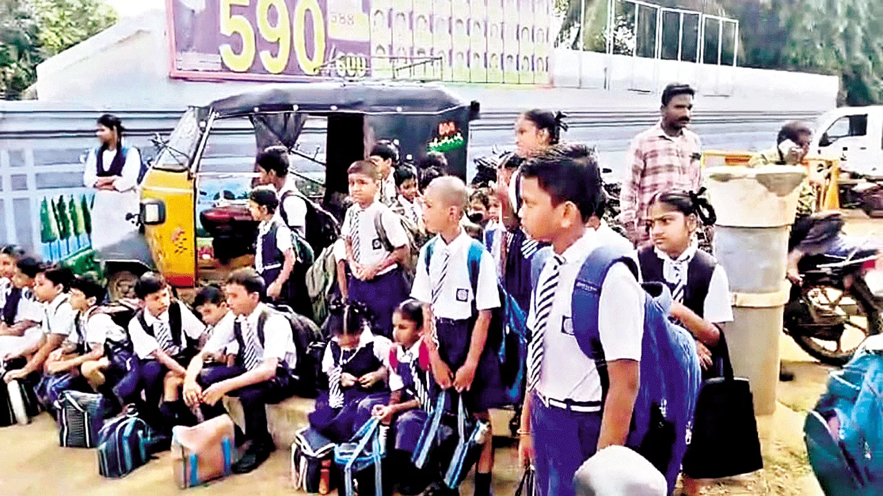 మా పిల్లలు గ్రామాల నుంచి ఆటోల్లో ఉదయం 8.30 గంటలకు వచ్చినా లోపలికి అనుమతిం చడం లేదని, అదే పాఠశాలకు చెందిన వాహనం 9 గంటలకు వచ్చినా అనుమతిస్తున్నారని విద్యార్థుల తలి ్లదండ్రులు డిప్యూటీ డీఈవో దృష్టికి తీసుకువెళ్లారు. పాఠశాల సమయం అయిపోయిందంటూ మా పిల్లలను నిత్యం రద్దీగా ఉండే రోడ్లపైనే ఉంచేస్తుండడంతో ఎండలో ఇబ్బందులు పడ డంతో పాటు ఎప్పుడు ఏమవుతుందోనని ఆందోళన చెందుతున్నామన్నారు. కణుగులవలసకు చెందిన తల్లి దండ్రులు మాట్లాడుతూ.. తాము ఫీజులతో పాటు ఏడా దికి సంబంధించిన బస్సు చార్జీలను పాఠశాల యాజ మాన్యానికి చెల్లించి నెలలవుతున్నప్పటికీ మా గ్రామానికి పాఠశాల బస్సు రావడం లేదని డిప్యూటీ డీఈవో దృష్టికి తీసుకువెళ్లారు.