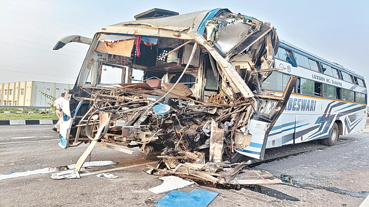 లారీని ఢీకొన్న ట్రావెల్ బస్సు.. 15 మందికి గాయాలు
