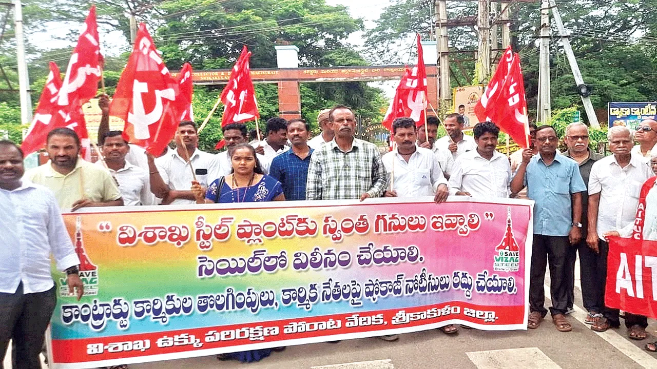 శ్రీకాకుళం కలెక్టరేట్, మే 26(ఆంధ్రజ్యోతి): విశాఖ స్టీల్ ప్లాంట్ ను ప్రైవేటీకరణ చేయొద్ద, లేకుంటే మోదీ ప్రభుత్వం తగిన మూ ల్యం చెల్లించక తప్పదని సీఐటీయూ జిల్లా అధ్యక్షుడు అమ్మన్నా యుడు అన్నారు. రాష్ట్రవ్యాప్త పిలుపులో భాగంగా కార్మిక సంఘాల ఆధ్వర్యంలో కలెక్టరేట్ ఎదుట ధర్నా కార్యక్రమం జరిగింది. ఈ సందర్భంగా ఆయన మాట్లాడుతూ.. విశాఖ ఉక్కు ప్రైవేటీకరణ కో సం కేంద్రంలోని కేంద్ర ప్రభుత్వం ప్రయత్నిస్తోందని, తన కుట్రలు మానుకోవాలన్నారు. ఎంతోమంది ప్రాణత్యాగాలతో సాధించుకున్న విశాఖ స్టీల్ను కార్పొరేట్లకు అప్పగించాలనుకోవడం సరికాదన్నారు. విశాఖ స్టీల్కు సొంత గనులను సమకూర్చాలని, సెయిల్లో విలీ నం చేయాలని డిమాండ్ చేశారు. అనంతరం వారు జడ్పీ సమా వేశ మందిరంలో నిర్వహస్తున్న గ్రీవెన్స్లో కలెక్టర్కు వినతిపత్రాన్ని అందజేశారు. ఎం.ఆదినారాయణమూర్తి, అల్లు సత్యనారాయణ, కె.సూరయ్య, చిక్కాల గోవిందరావు, ఆర్.ప్రకాశరావు, ఎం.గోవర్దన రావు తదితరులు పాల్గొన్నారు.