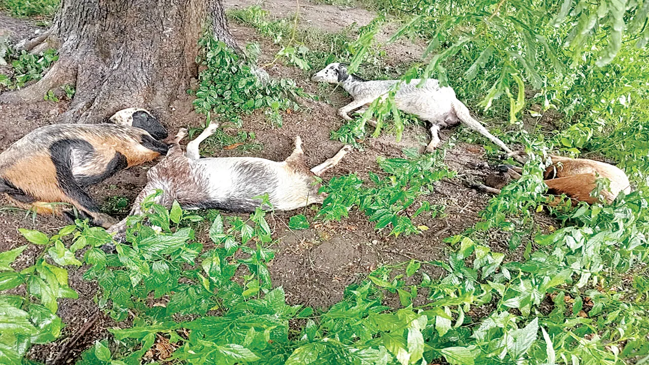 పిడుగుపాటుకు మేకలు, గొర్రెలు మృతి