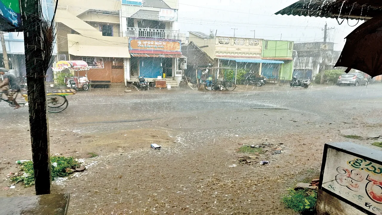 Heavy rain fall జిల్లాలో సోమవారం విచిత్ర వాతావరణ పరిస్థితులు నెలకొన్నాయి. ఉదయం నుంచి మధ్యాహ్నం వరకు భానుడు ప్రతాపం చూపడంతో ప్రజలు ఉక్కపోతకు గురయ్యారు. సాయంత్రం పిడుగుల మోత... ఈదురుగాలుల బీభత్సంతో కుండపోత వర్షం కురవడంతో భయాందోళన చెందారు.