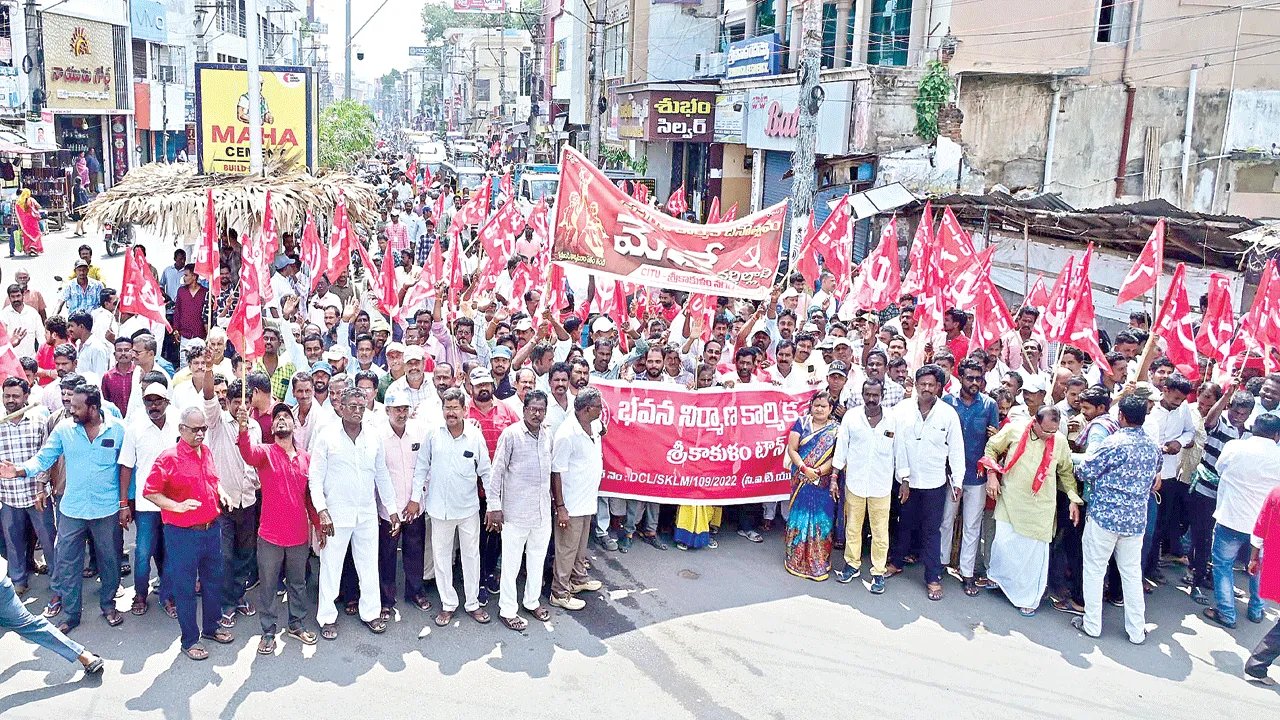 May day rally ప్రపంచ కార్మిక దినోత్సవం మేడే స్ఫూర్తిగా హక్కుల సాధన కోసం ఐక్యపోరాటాలు చేద్దామని వివిధ కార్మిక సంఘాల నాయకులు పిలుపునిచ్చారు. శ్రీకాకుళంలో గురువారం పలు కార్మిక సంఘాల ఆధ్వర్యంలో మేడే వేడుకలు ఘనంగా నిర్వహించారు.