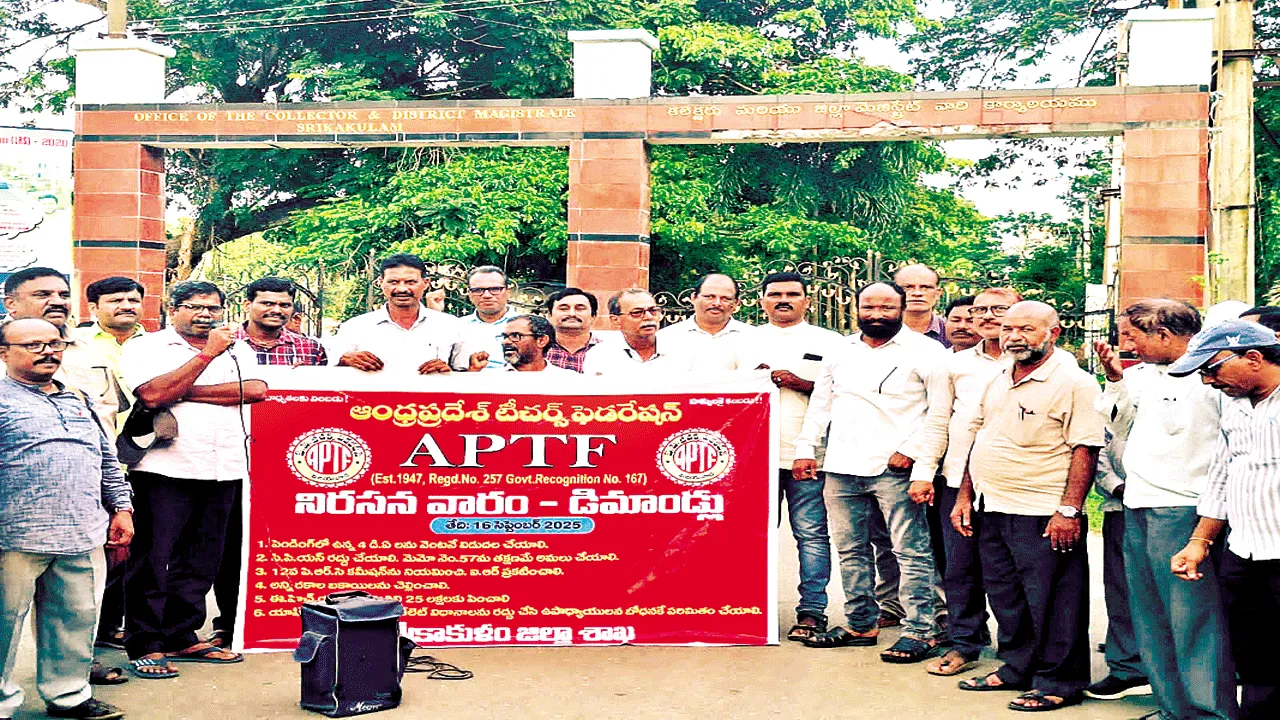 శ్రీకాకుళం కలెక్టరేట్, సెప్టెంబరు 16(ఆంధ్రజ్యోతి): పెండింగ్లో ఉన్న నాలుగు డీఏలను వెంటనే చెల్లించాలని ఏపీటీఎఫ్ రాష్ట్ర కార్యదర్శి కె. భానుమూర్తి డిమాండ్ చేశారు. ఈ మేరకు మంగళవారం కలెక్టరేట్ వద్ద సంఘ ప్రతినిధులతో కలిసి ధర్నా నిర్వహించారు. ఈ సందర్భంగా ఆయన మాట్లాడుతూ ఉద్యోగుల, ఉపాధ్యాయుల దీర్ఘకాలిక సమస్యలను పరిష్క రించడంలో ప్రభుత్వం నిర్లక్ష్యం వహించడం సరికాదన్నారు. 12వ పీఆర్సీని నియమించాలని, ఐఆర్ ప్రకటించాలని కోరారు. అనం తరం జేసీ ఫర్మాన్ అహ్మద్ఖాన్కు వినతిపత్రం అందజేశారు. కార్యక్ర మంలో సంఘం ప్రతి నిధులు మజ్జి మదన్మోహన్, చావలి శ్రీనివాస రావు, బి.చంద్రశేఖర్, ఎస్. శంకరరావు తదితరులు పాల్గొన్నారు.