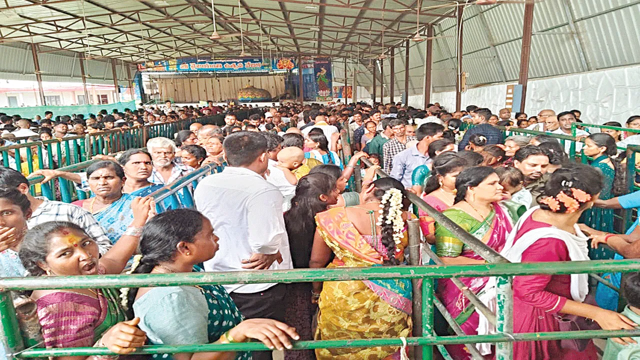 ఎండలోనే క్యూలైన్లలో భక్తులు..